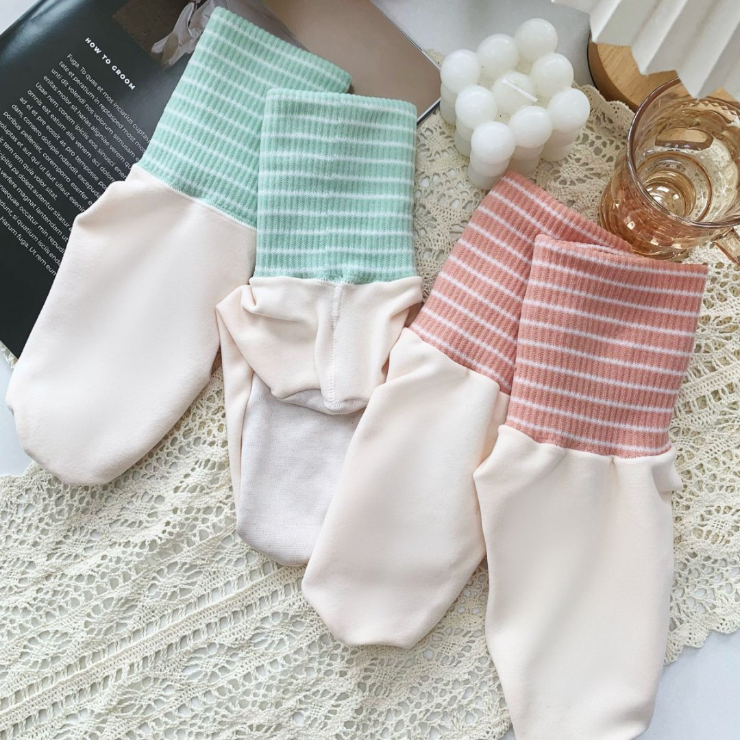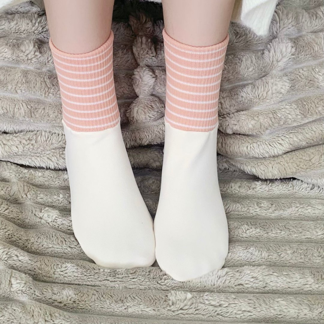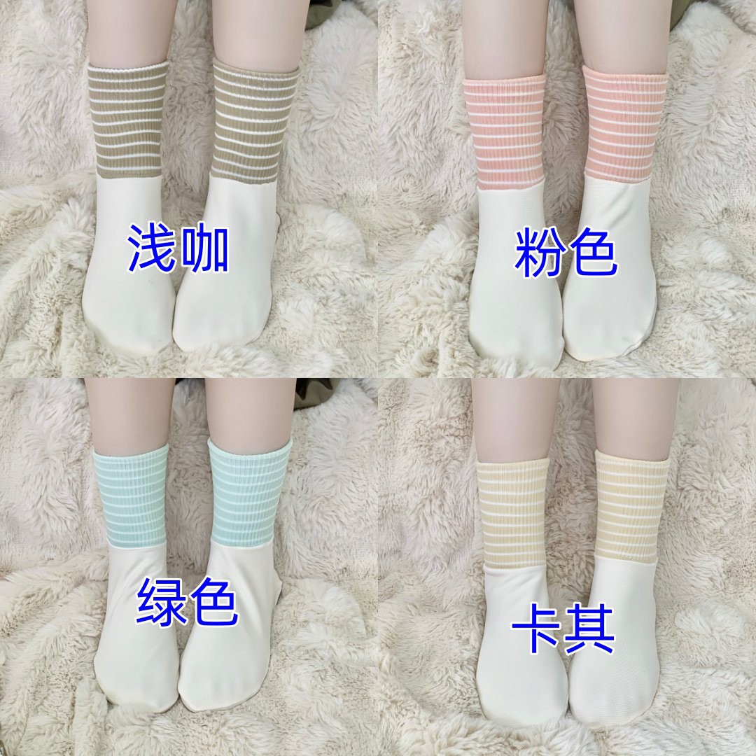 봄 여름 신상품 대형 여성용 종아리 양말 줄무늬 쑥 느슨한 입 흡습 및 땀 방지 볼 없는 커플 에어컨 양말스토어 가기