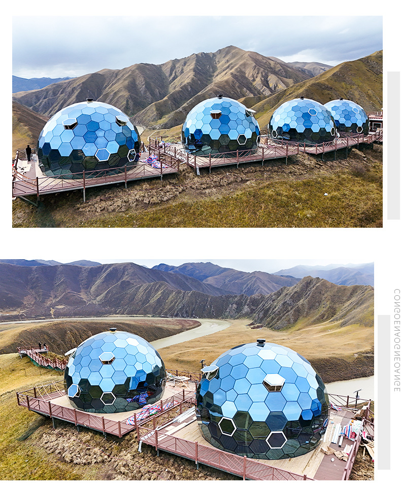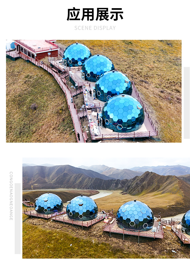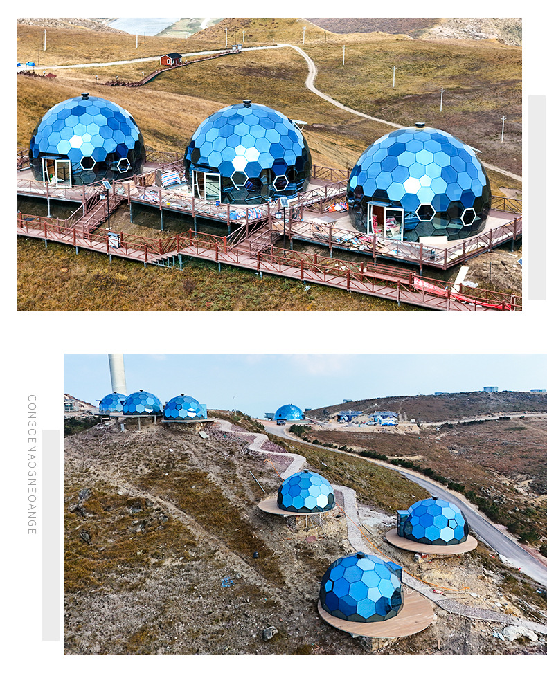 야외 고급 호텔을 위한 맞춤형 복사 유리 구형 별이 빛나는 하늘 방, 중공 강화 유리, 단열, 보온 및 방음