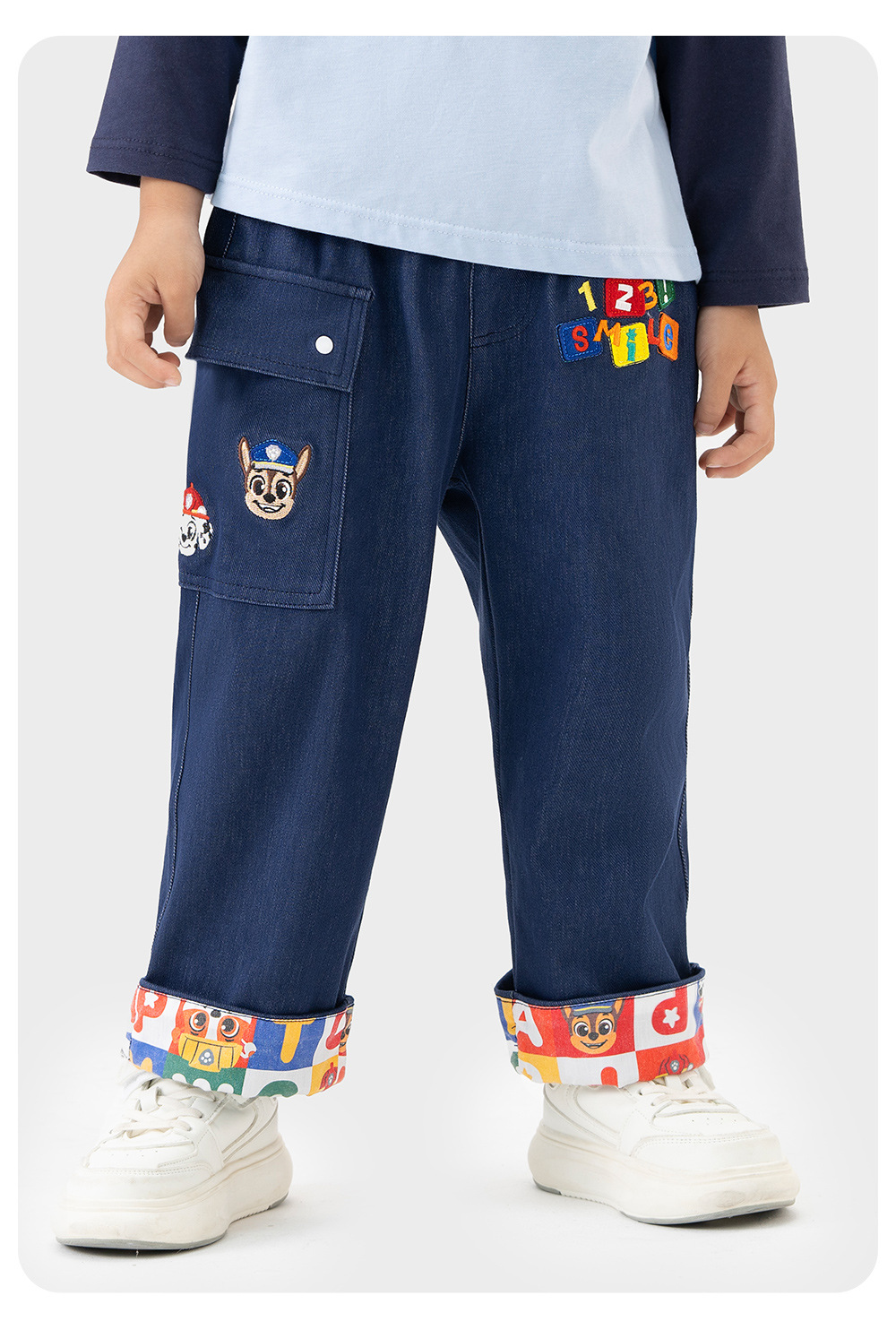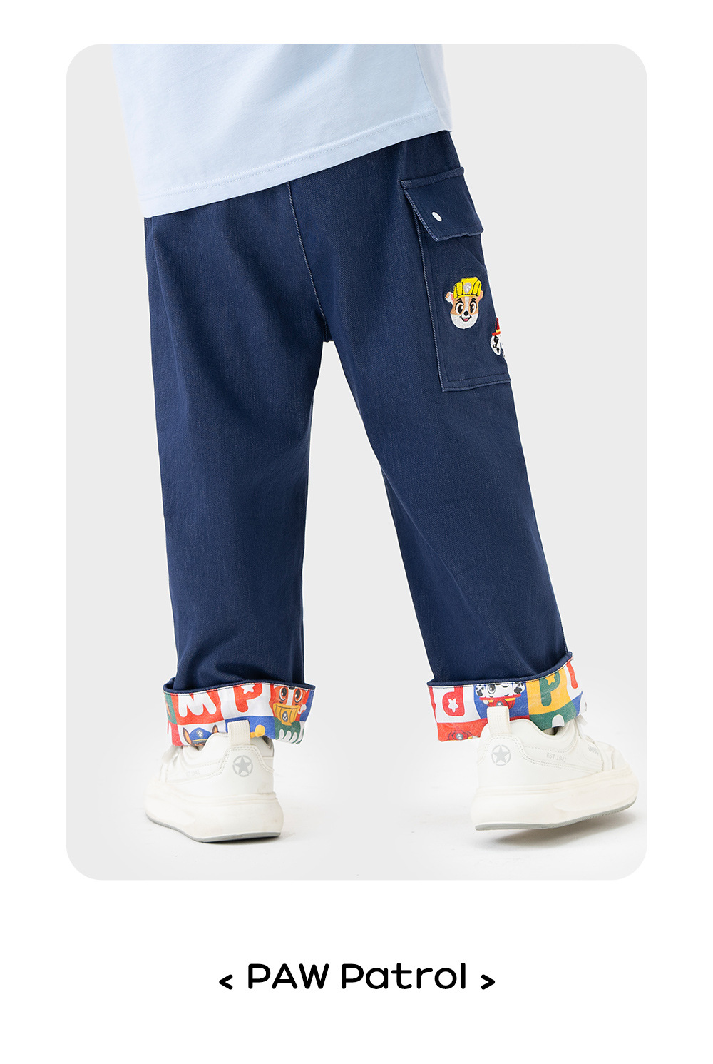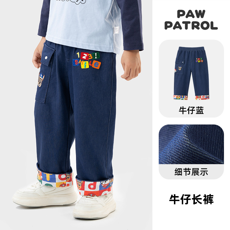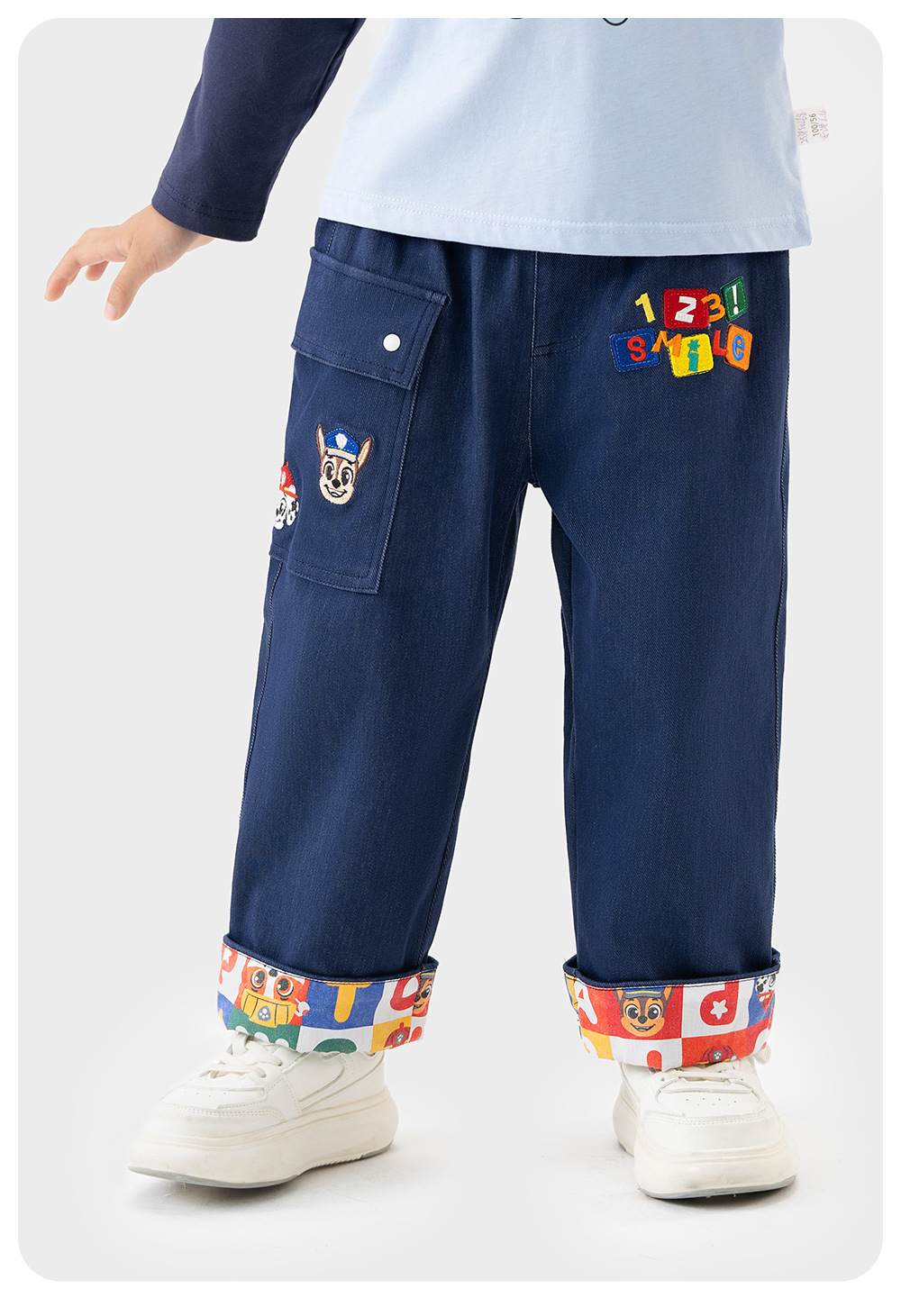Paw Patrol 어린이 청바지 봄과 가을 큰 주머니 디자인 소년과 소녀를위한 자수 스트레이트 가을 스포츠 캐주얼 바지스토어 가기