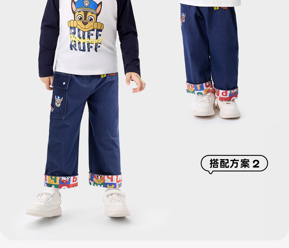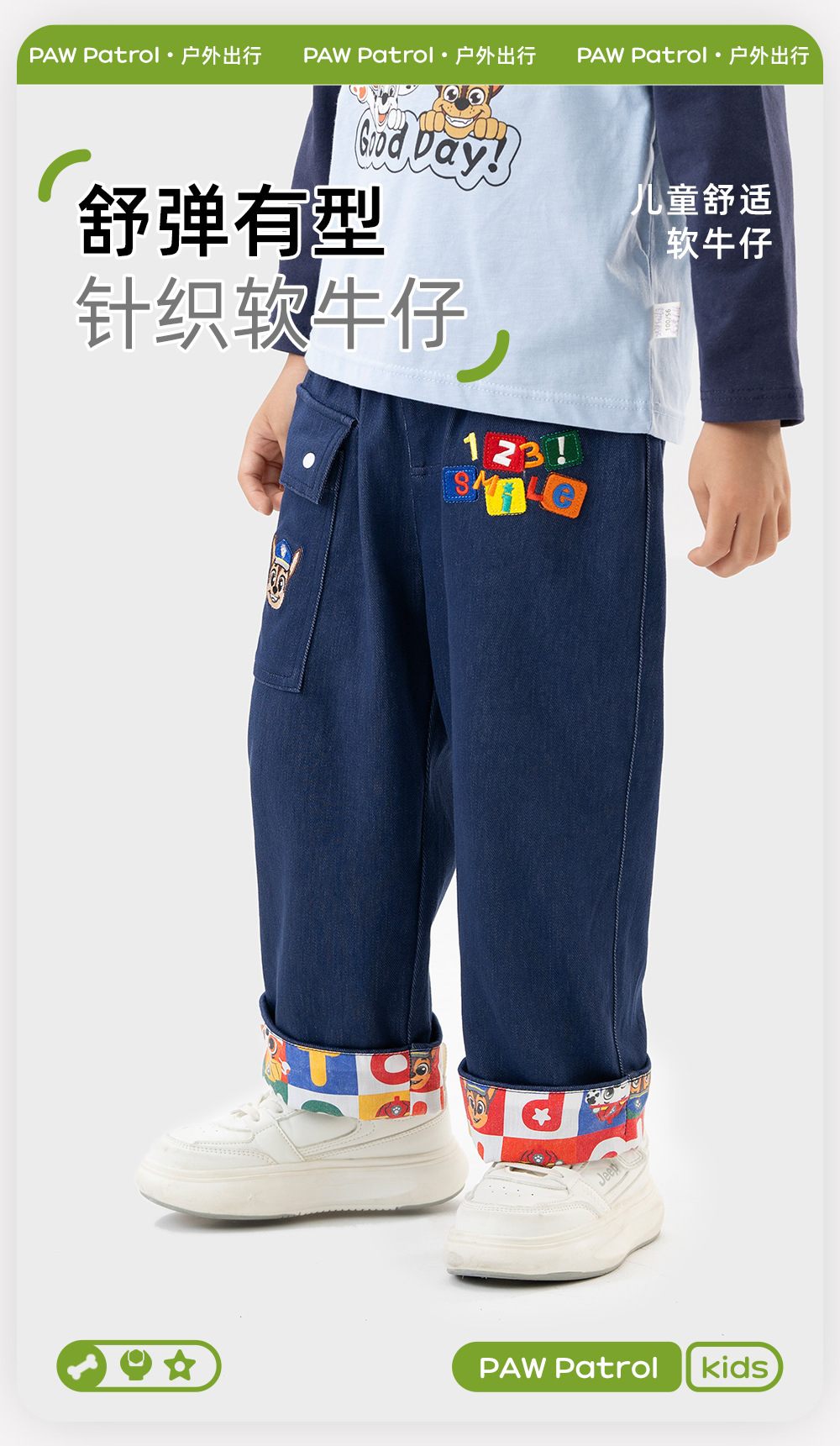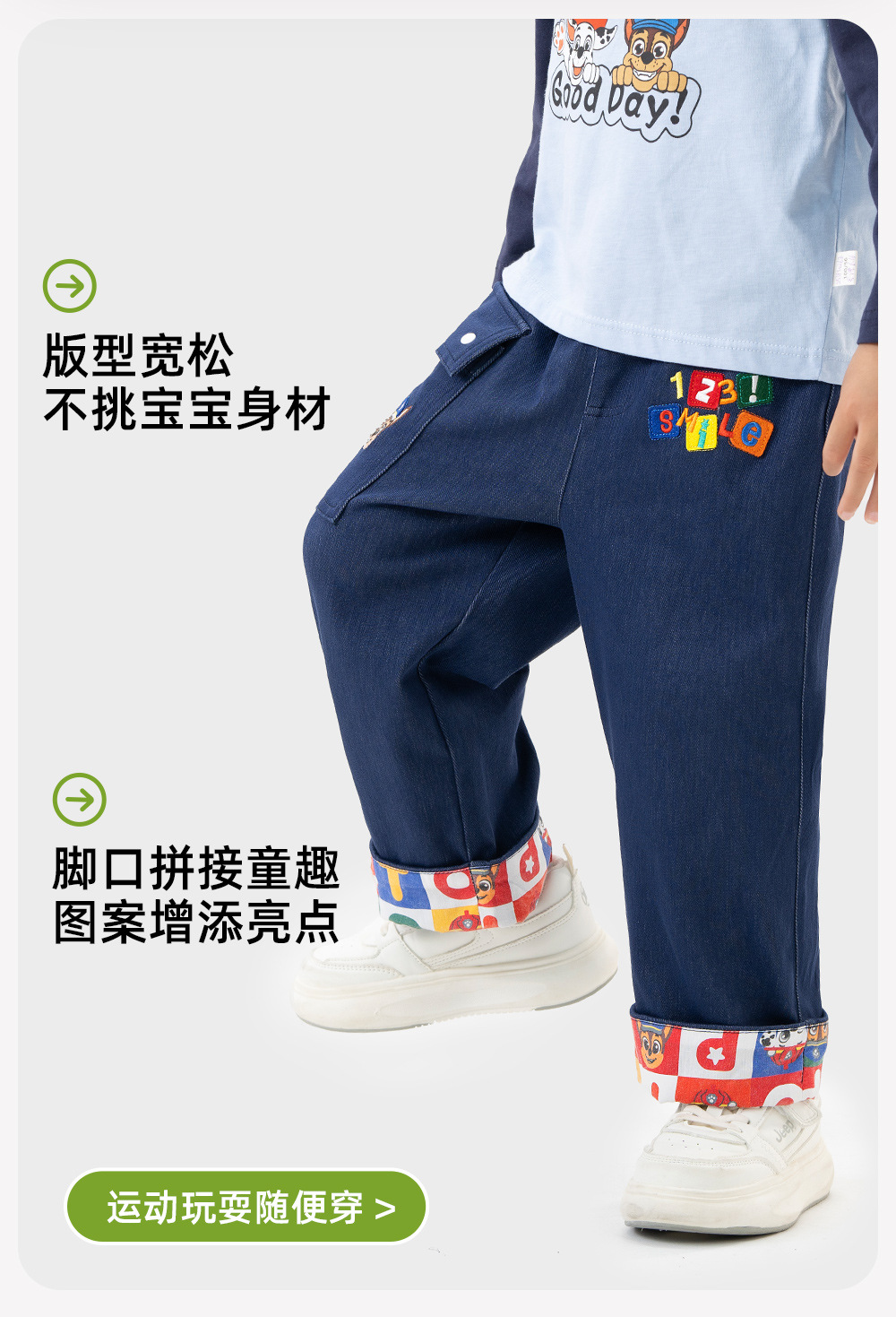 Paw Patrol 어린이 청바지 봄과 가을 큰 주머니 디자인 소년과 소녀를위한 자수 스트레이트 가을 스포츠 캐주얼 바지스토어 가기