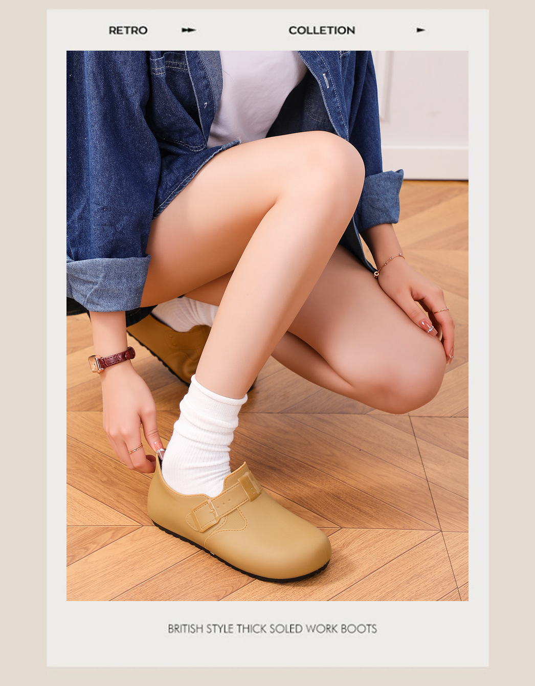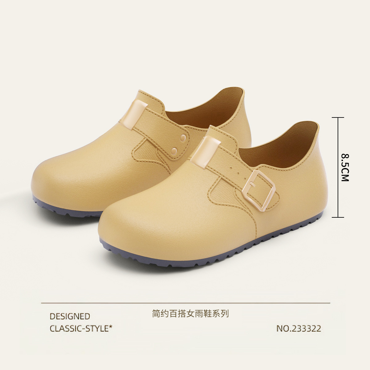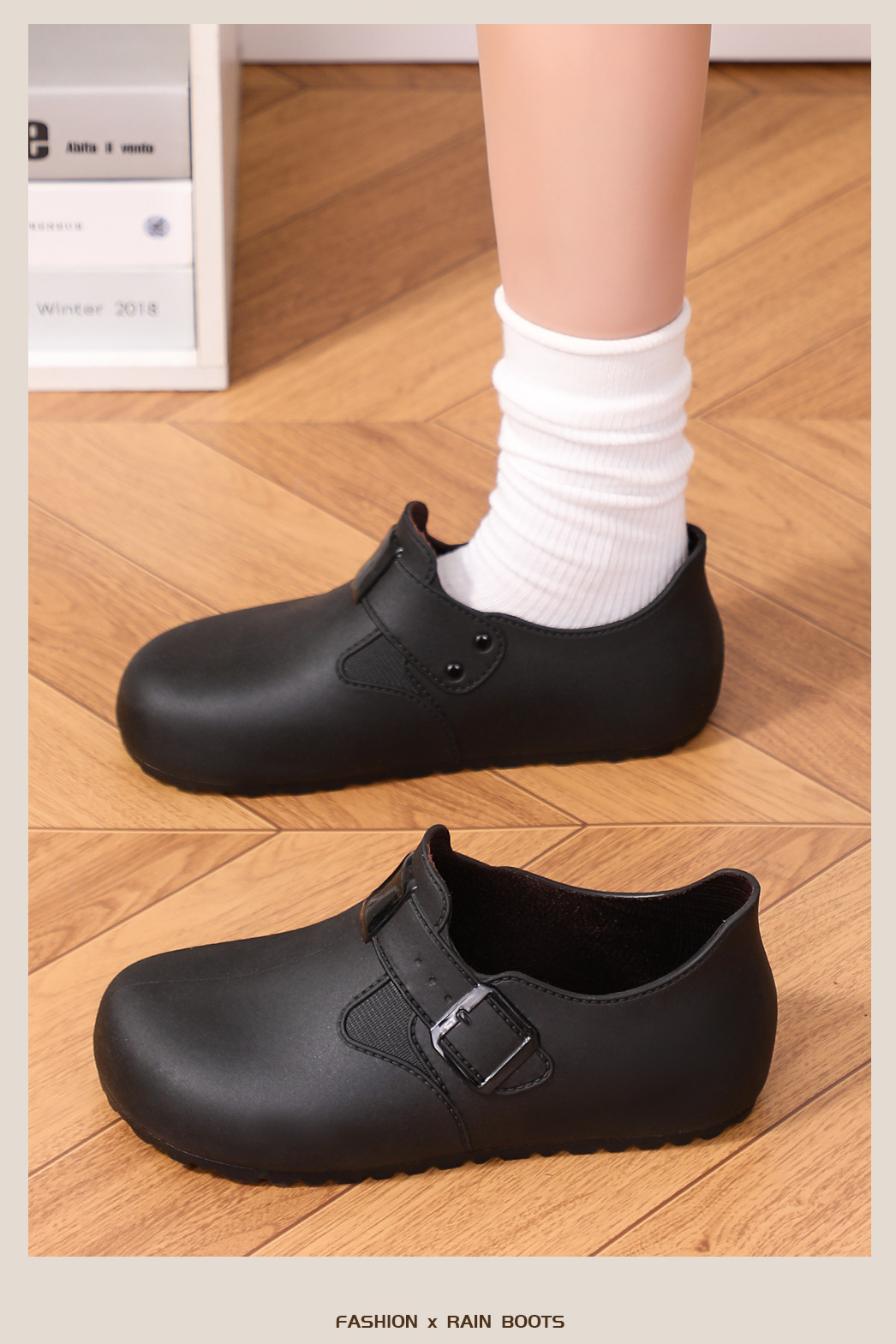 일본 신상 버켄스타이어 스타일 여성용 슬립온 레인슈즈, 빈티지 스타일의 귀여운 레인슈즈