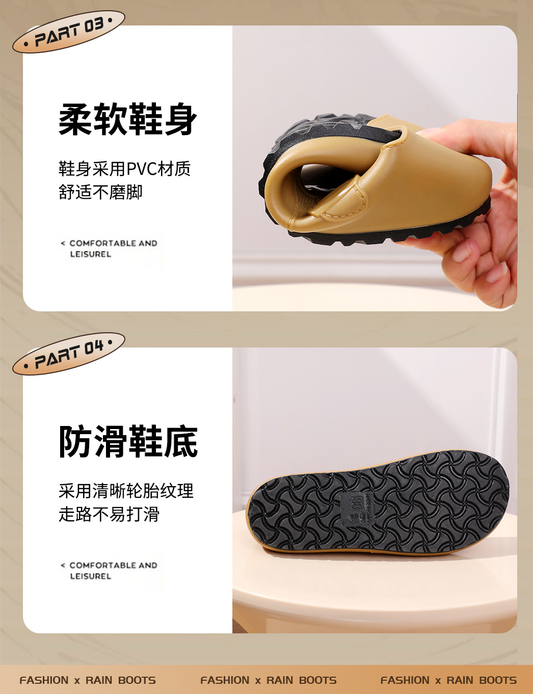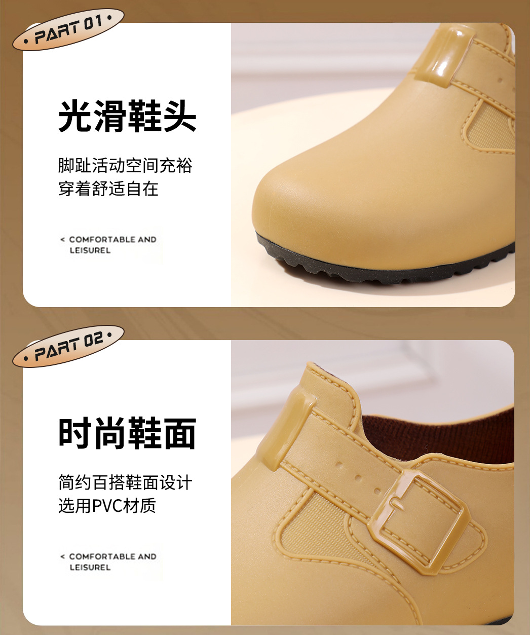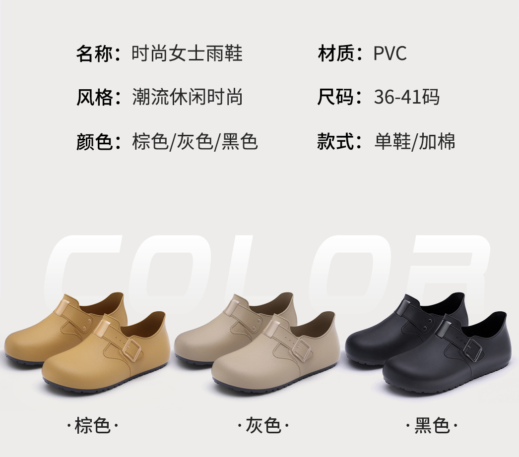 일본 신상 버켄스타이어 스타일 여성용 슬립온 레인슈즈, 빈티지 스타일의 귀여운 레인슈즈