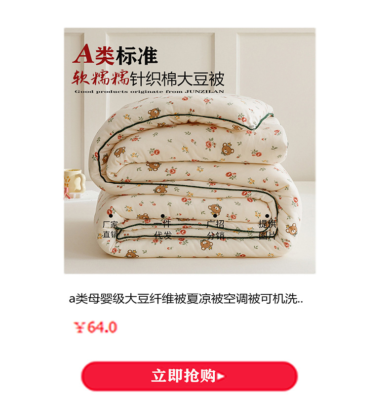 클래스 A 산모 및 유아 등급 콩 섬유 니트 면 여름 이불 기계 세탁 가능한 여름 어린이 얇은 이불 가정용 에어컨 이불스토어 가기