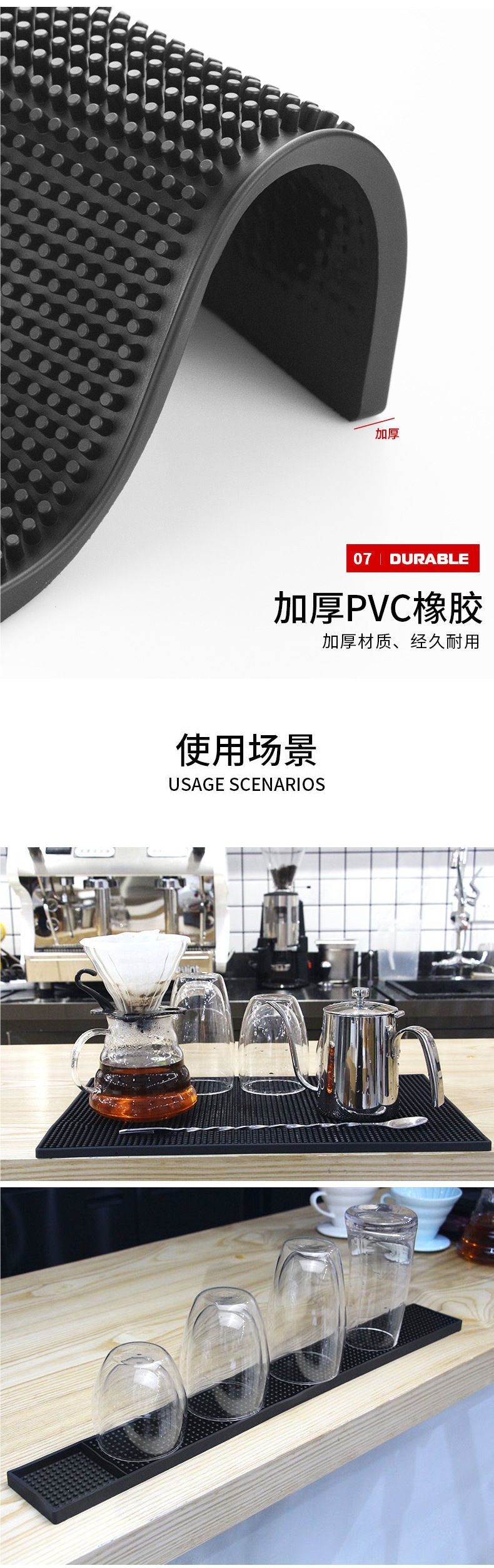 배수 및 방수 매트, 바 특수 매트, 고무 찻잔, 미끄럼 방지 및 충격 방지 직사각형 와인 컵 매트스토어 가기