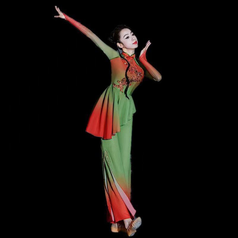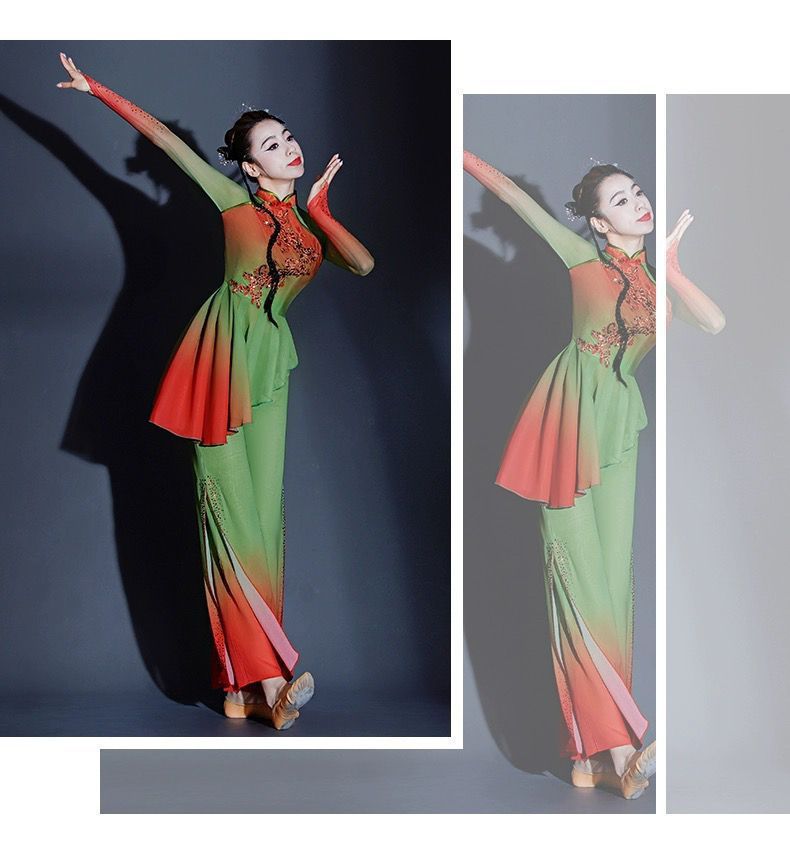 양고 공연 의상 2024 중국 새로운 팬 댄스 의상 Jiaozhou 우아한 고전 우산 댄스 공연스토어 가기