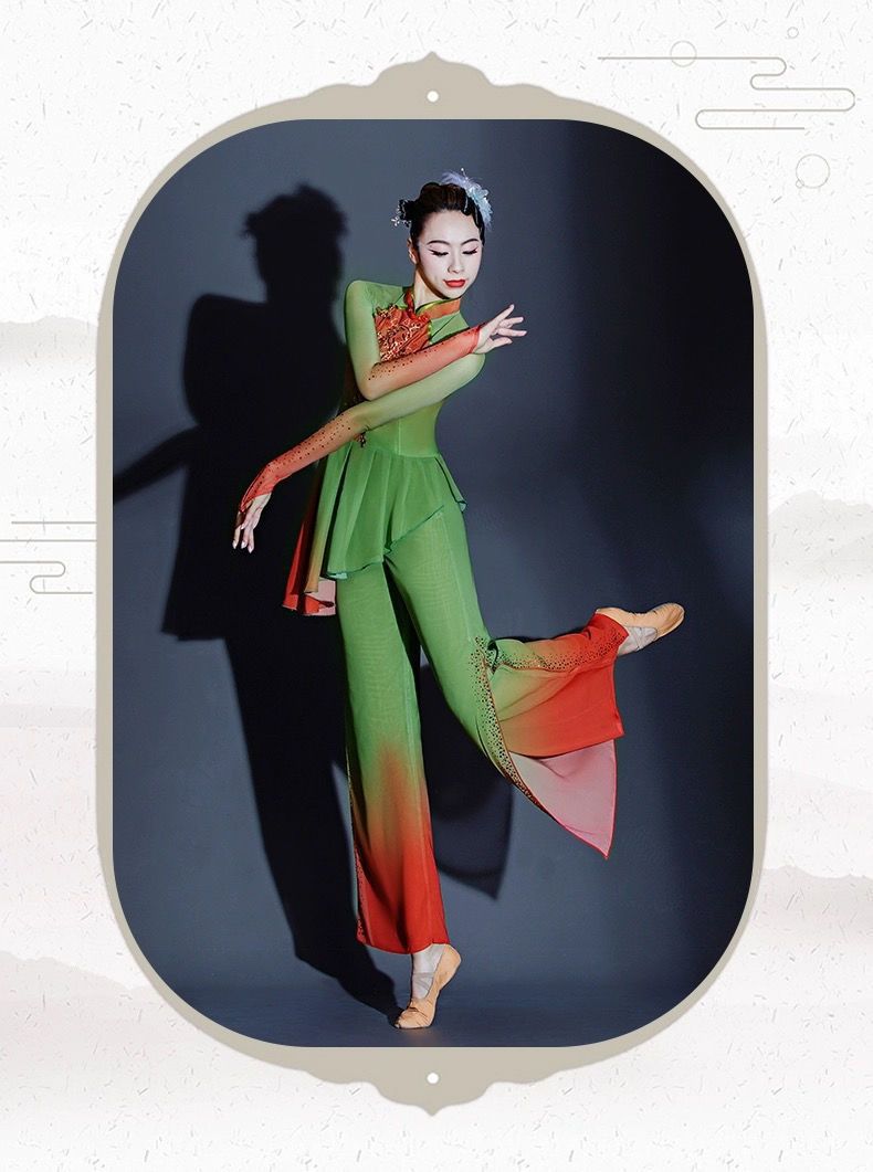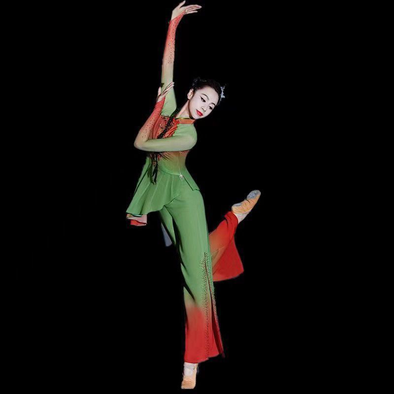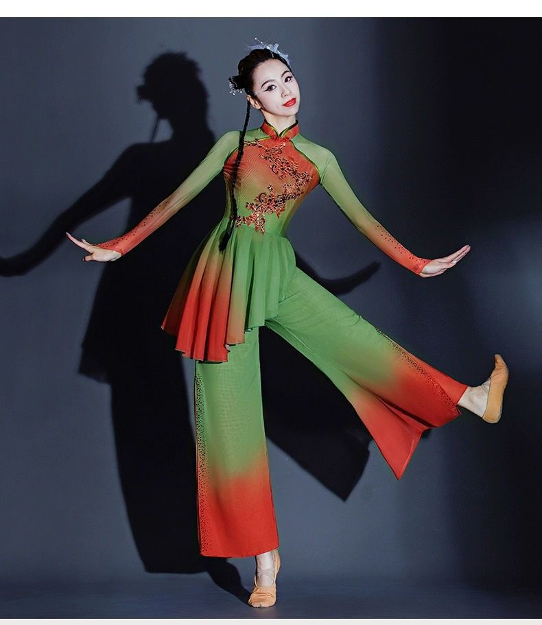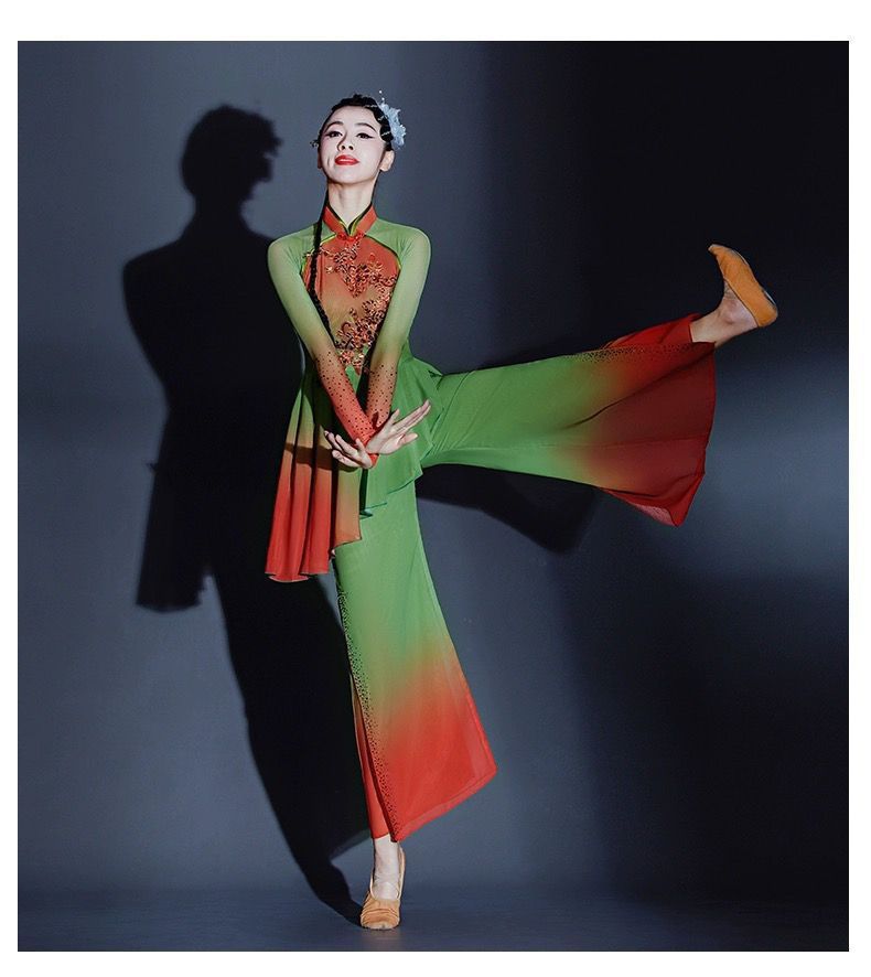 양고 공연 의상 2024 중국 새로운 팬 댄스 의상 Jiaozhou 우아한 고전 우산 댄스 공연