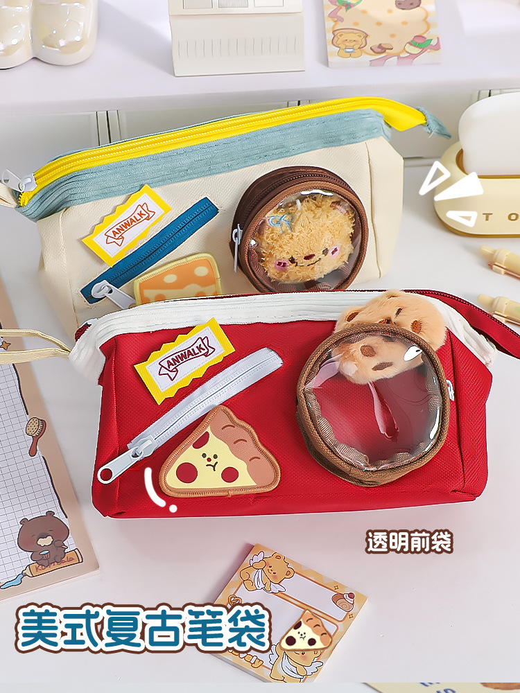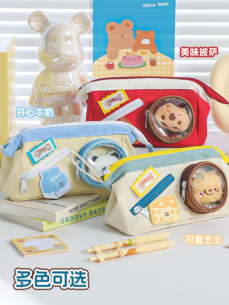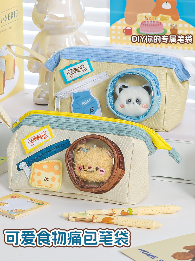 귀여운 음식 통통한 필통 인스 고급스러운 대용량 중고등학생 문구 상자 연필 수납 가방스토어 가기