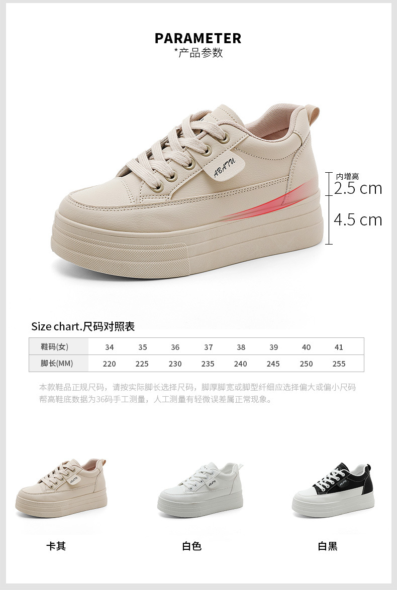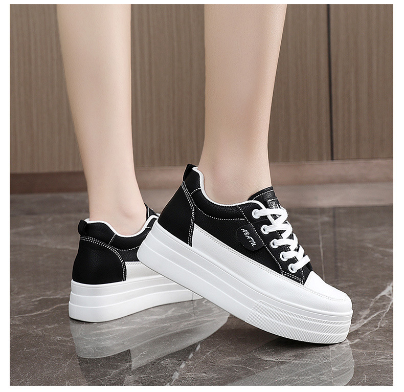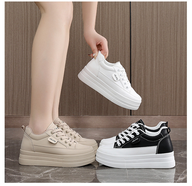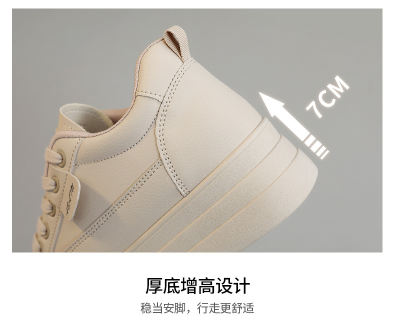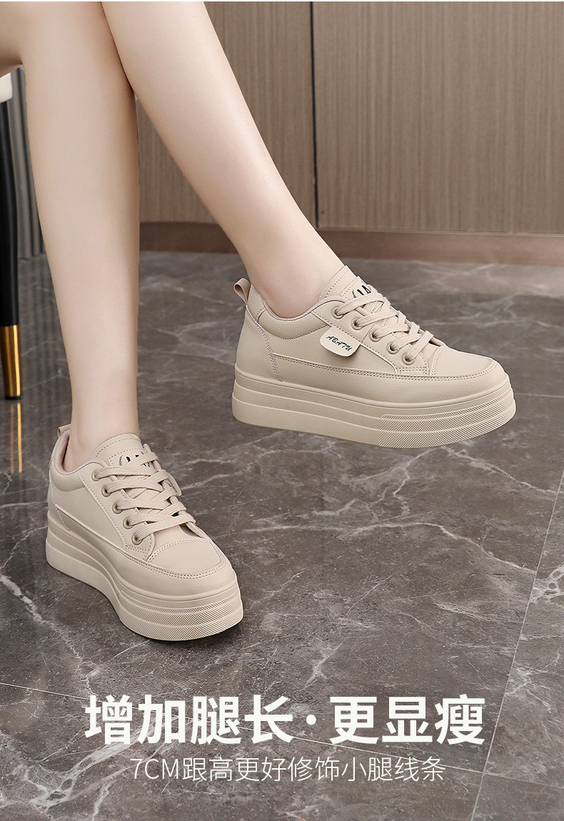 ZY6003 여성 신발 봄 2025 새로운 스타일 내부 높이 증가 캐주얼 신발 여성 정품 가죽 플랫폼 밑창 다목적 흰색 신발스토어 가기