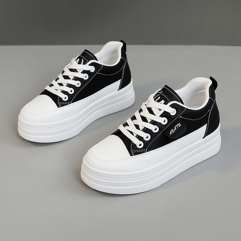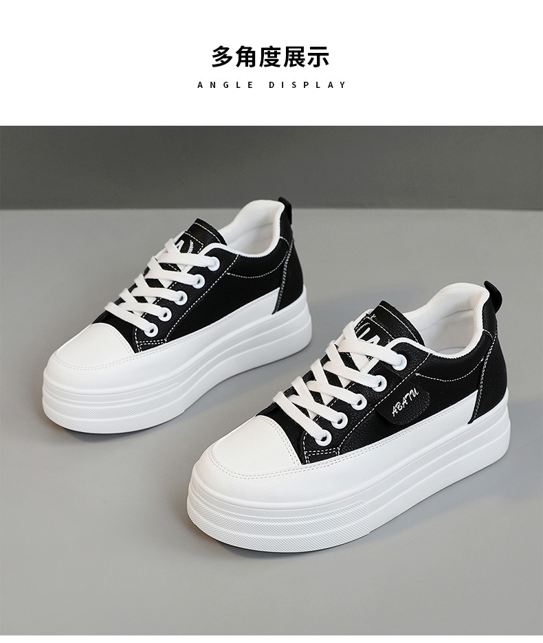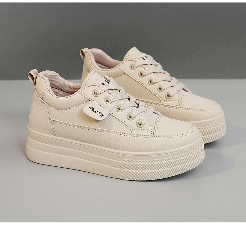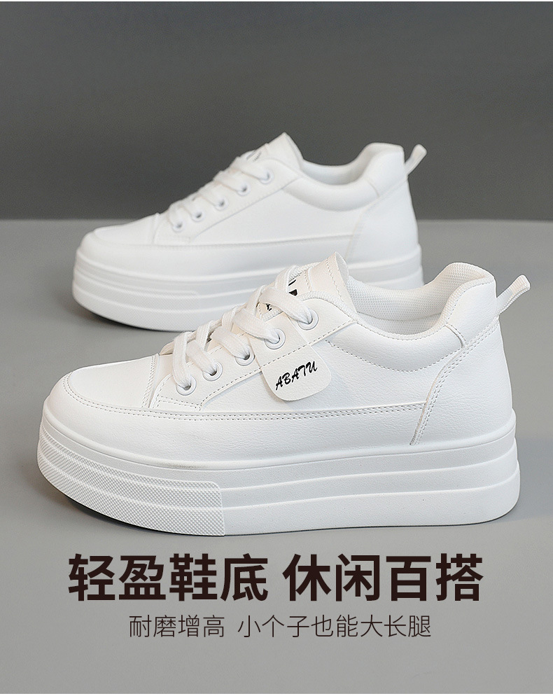 ZY6003 여성 신발 봄 2025 새로운 스타일 내부 높이 증가 캐주얼 신발 여성 정품 가죽 플랫폼 밑창 다목적 흰색 신발스토어 가기