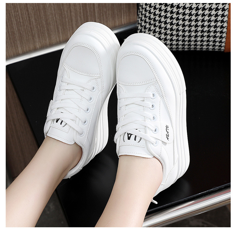 ZY6003 여성 신발 봄 2025 새로운 스타일 내부 높이 증가 캐주얼 신발 여성 정품 가죽 플랫폼 밑창 다목적 흰색 신발