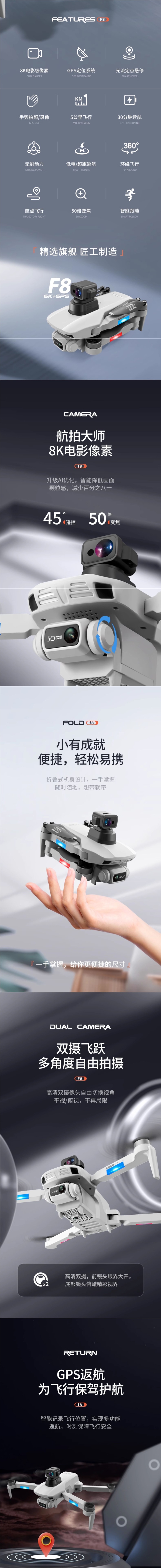 • {3개 카메라} 고품질 [대형 + 전문가 버전] F8-8K+ 10000m + 듀얼 카메라 + 전자 제어 짐벌 + 듀얼 GPS + 브러시리스 모터