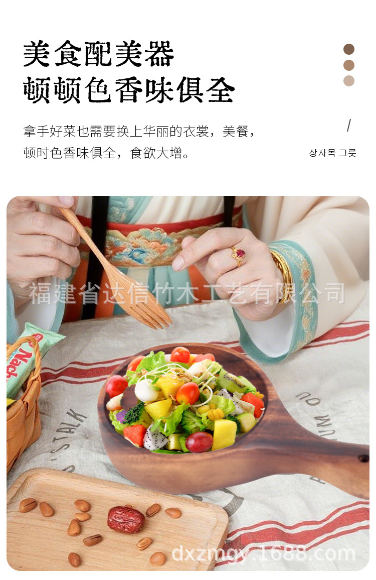 아카시아나무 인터넷 연예인 라면그릇 한국식 긴 손잡이 나무그릇 긴 손잡이가 달린 둥근 입 그릇 피클그릇 샐러드 나무그릇스토어 가기