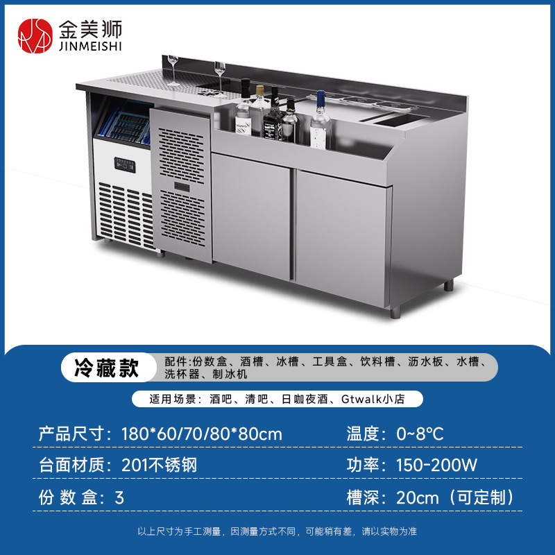 • 【바텐더 추천】 1.8m 냉장 칵테일 테이블 + 제빙기