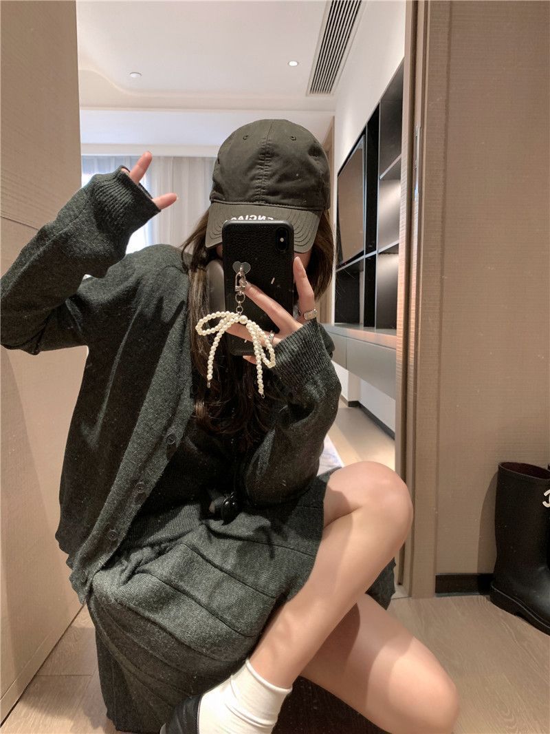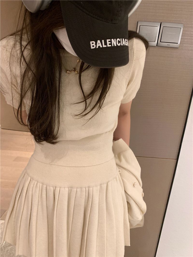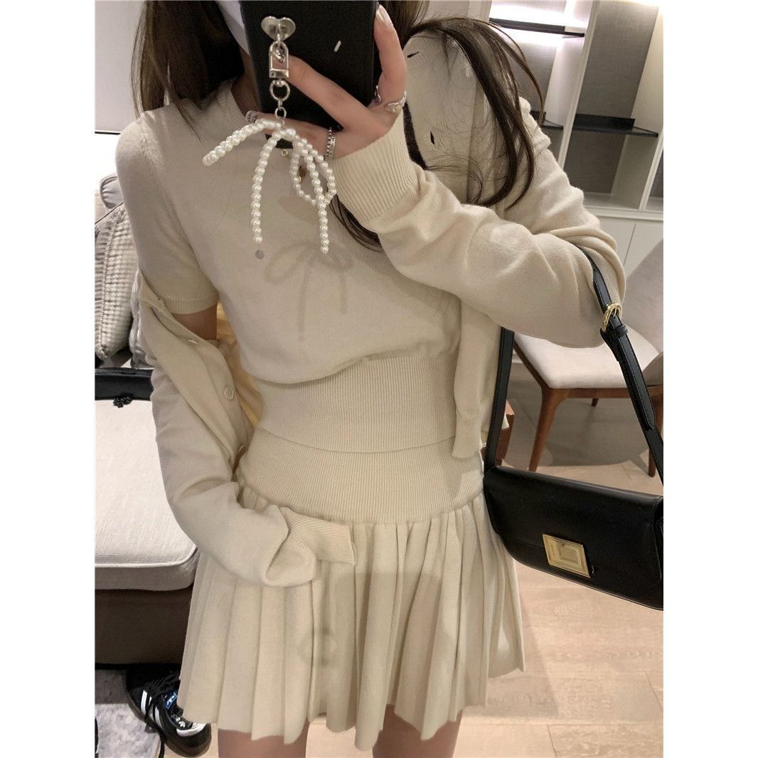 여성용 컬리지 스타일 니트 슈트, 한국 스타일 니트 가디건 + 탑 + 플리츠 스커트 3피스 세트, 패셔너블하고 스타일리시함스토어 가기