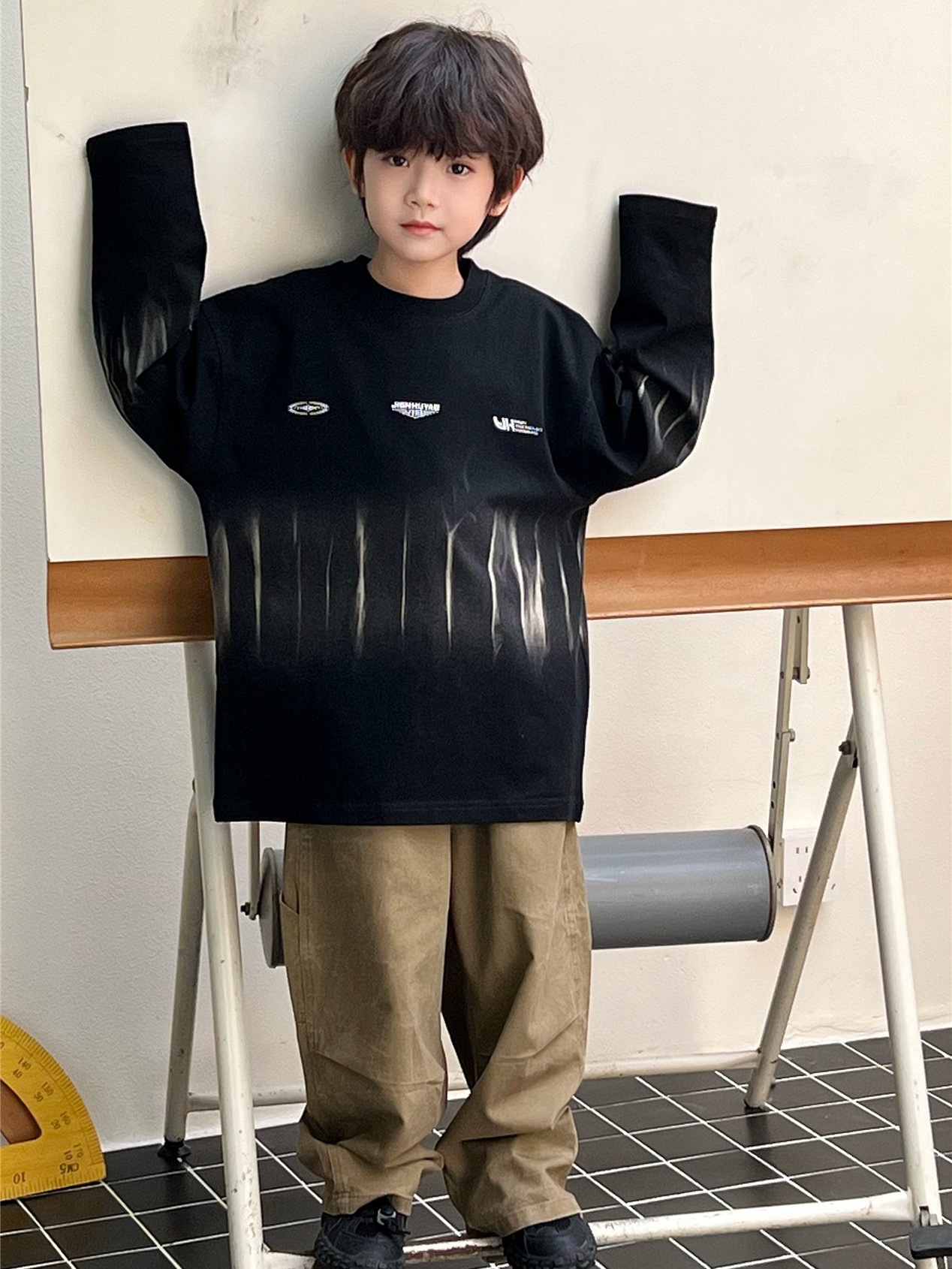 2026 봄 아동용 스타일리쉬 베이직 긴팔 티셔츠, 레트로 타이다이 남아 베이비 트렌디 이너웨어