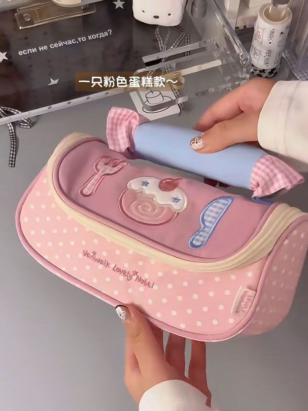 샤오홍슈와 같은 디자인의 딸기롤 마카롱 필통, 고급스럽고 대용량의 여아용 화장품 가방, 휴대용 수납가방스토어 가기