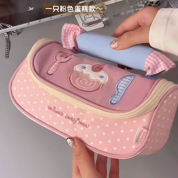 샤오홍슈와 같은 디자인의 딸기롤 마카롱 필통, 고급스럽고 대용량의 여아용 화장품 가방, 휴대용 수납가방
