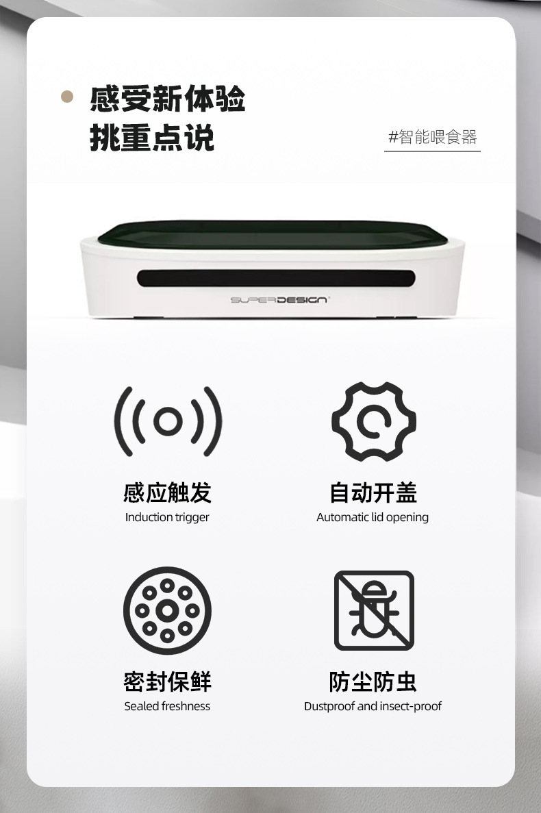 • 智能开盖喂食碗