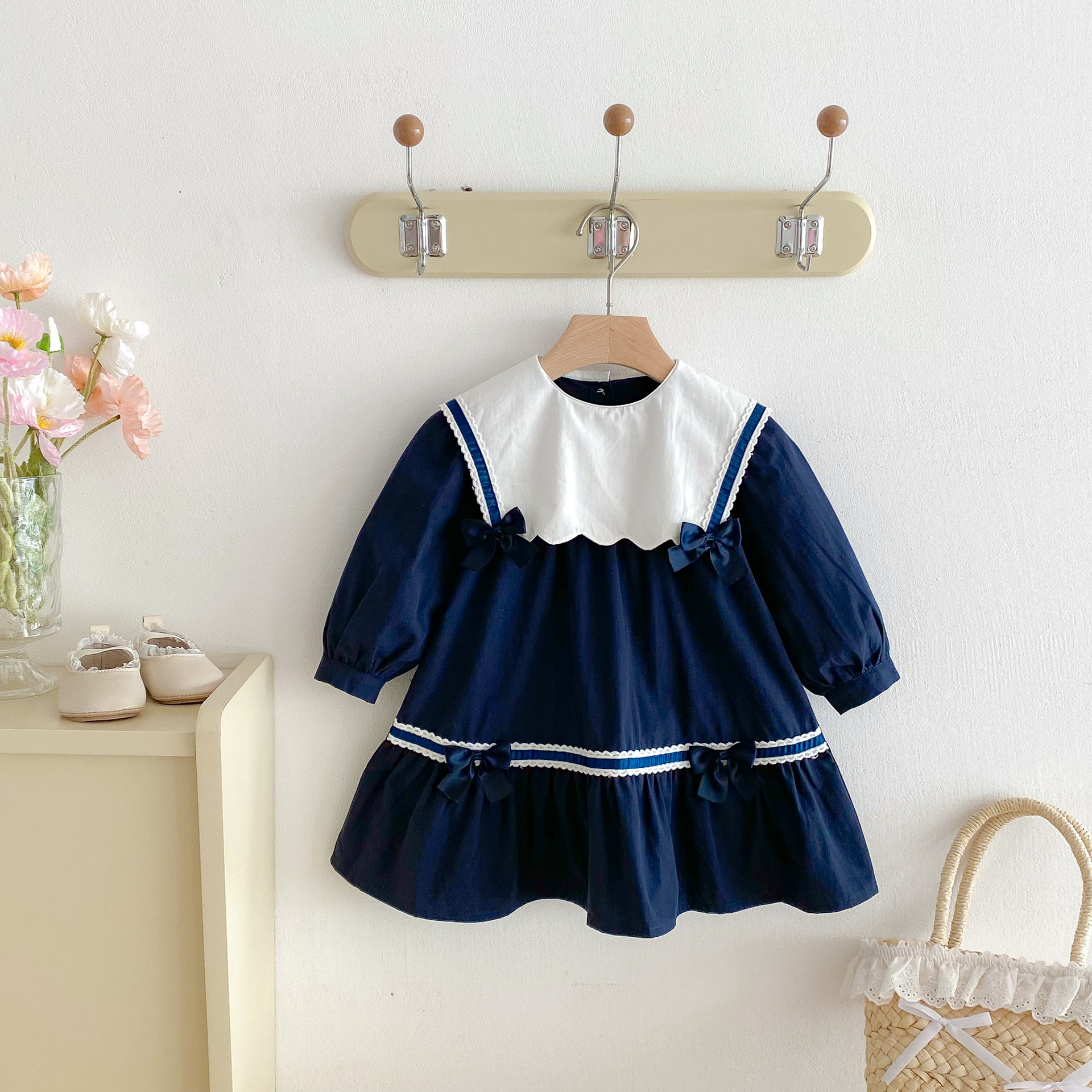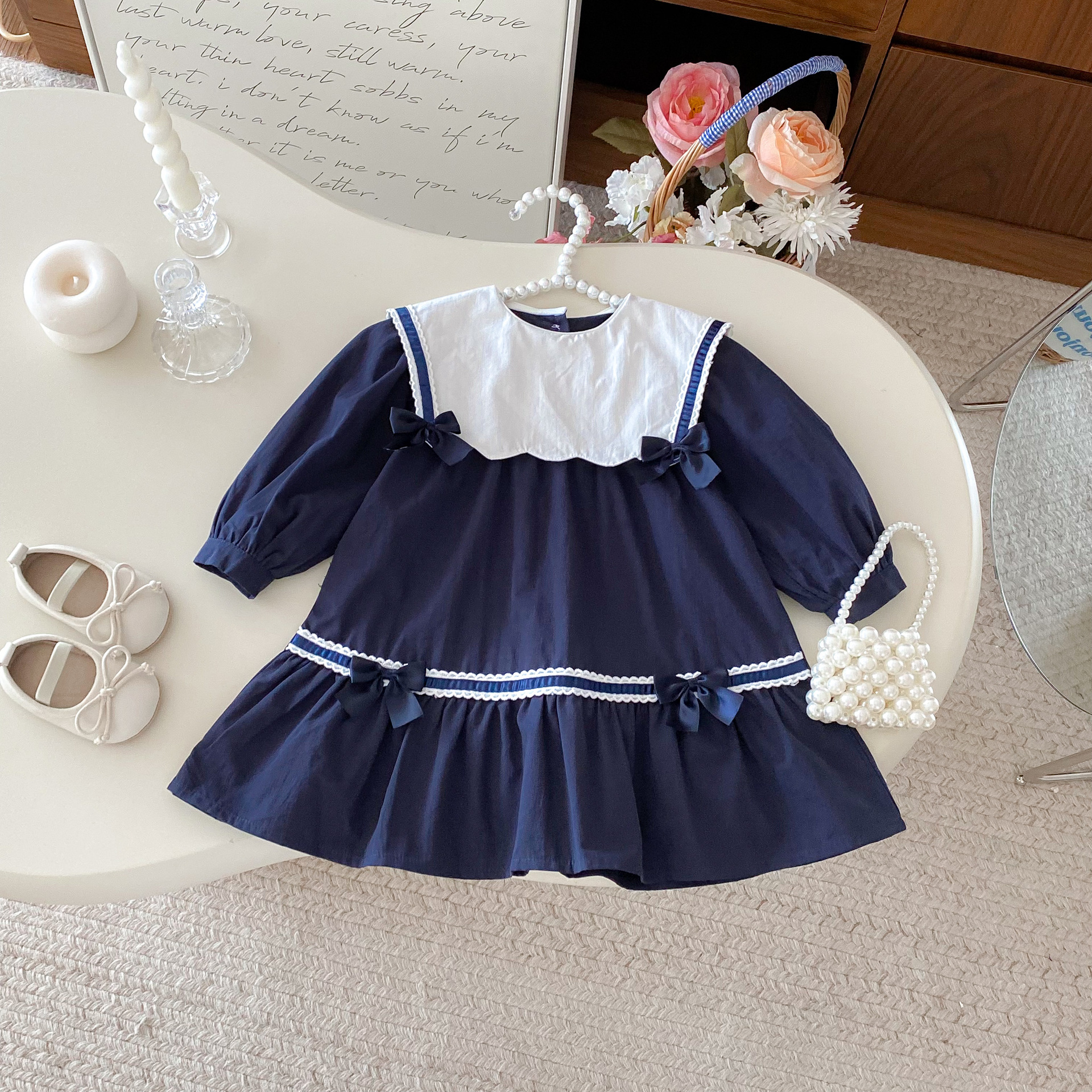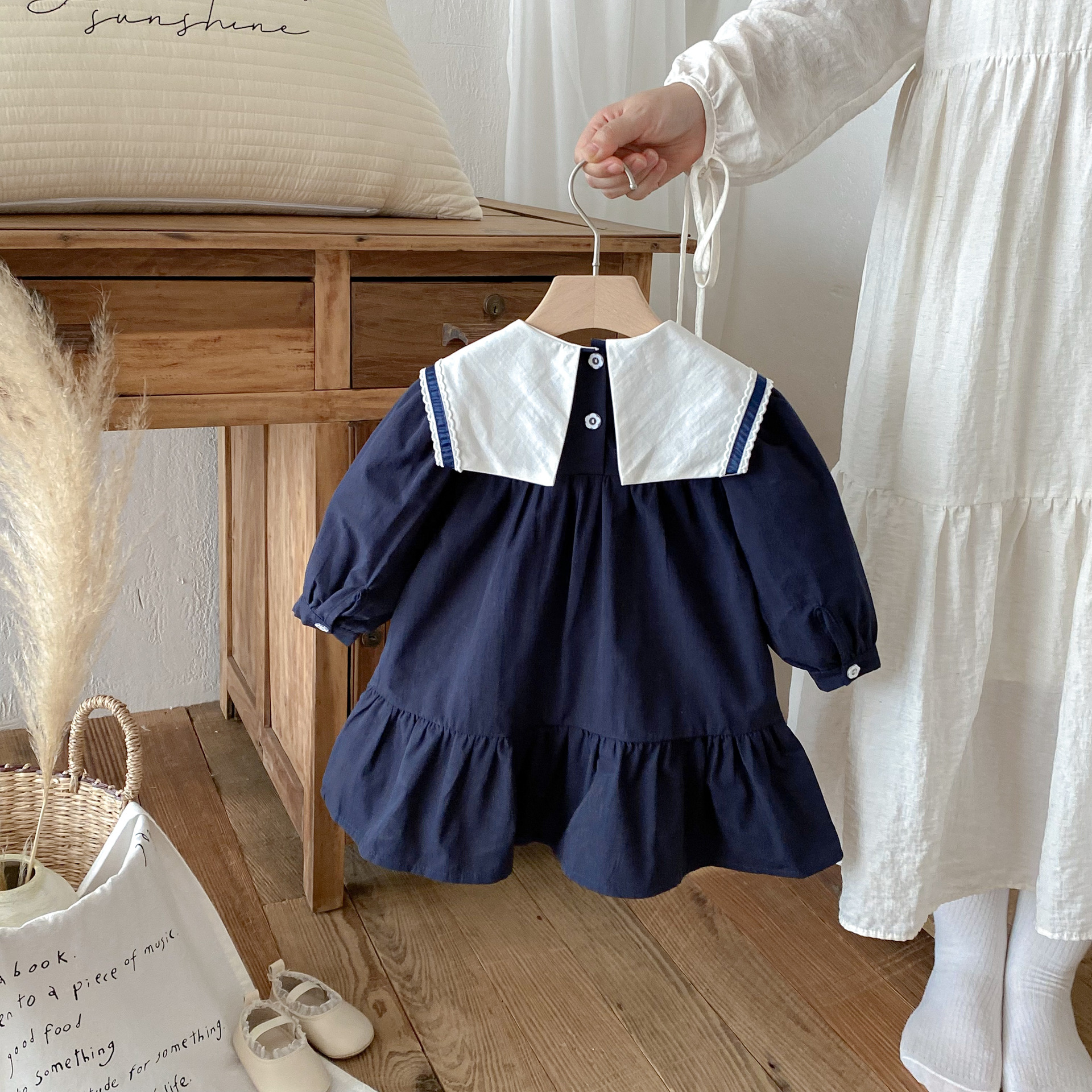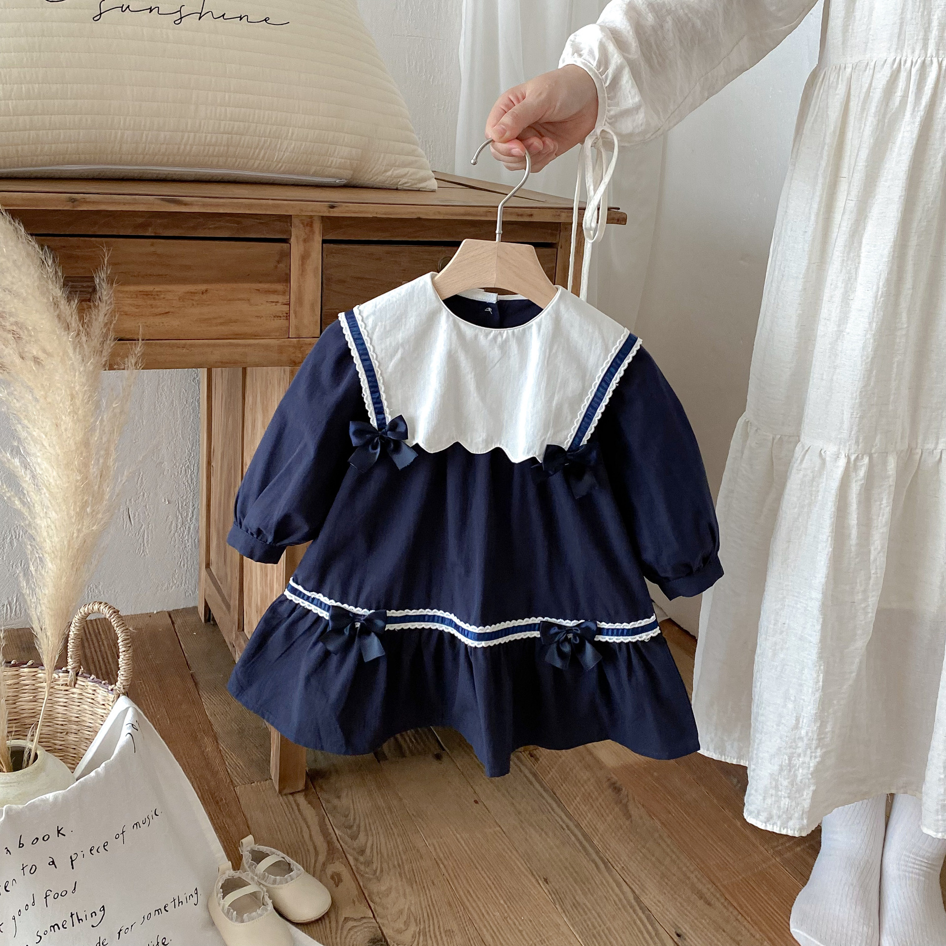 여자 드레스 가을 새로운 대학 스타일 옷깃 활 어린이 해군 칼라 아기 소녀 아동 의류 스커트스토어 가기