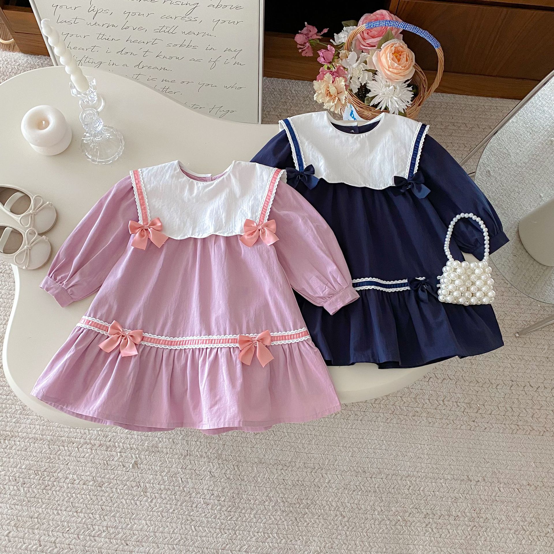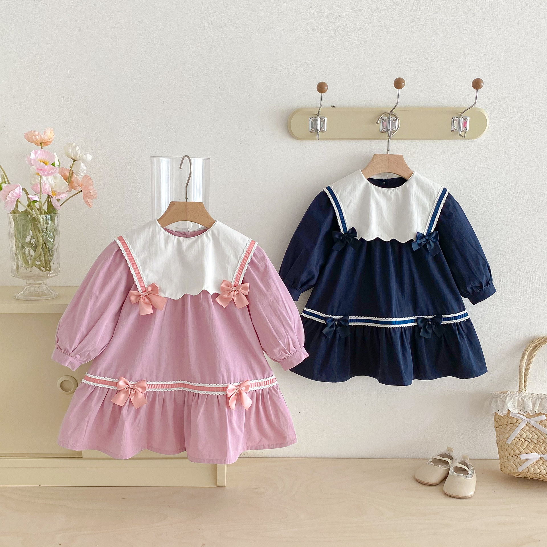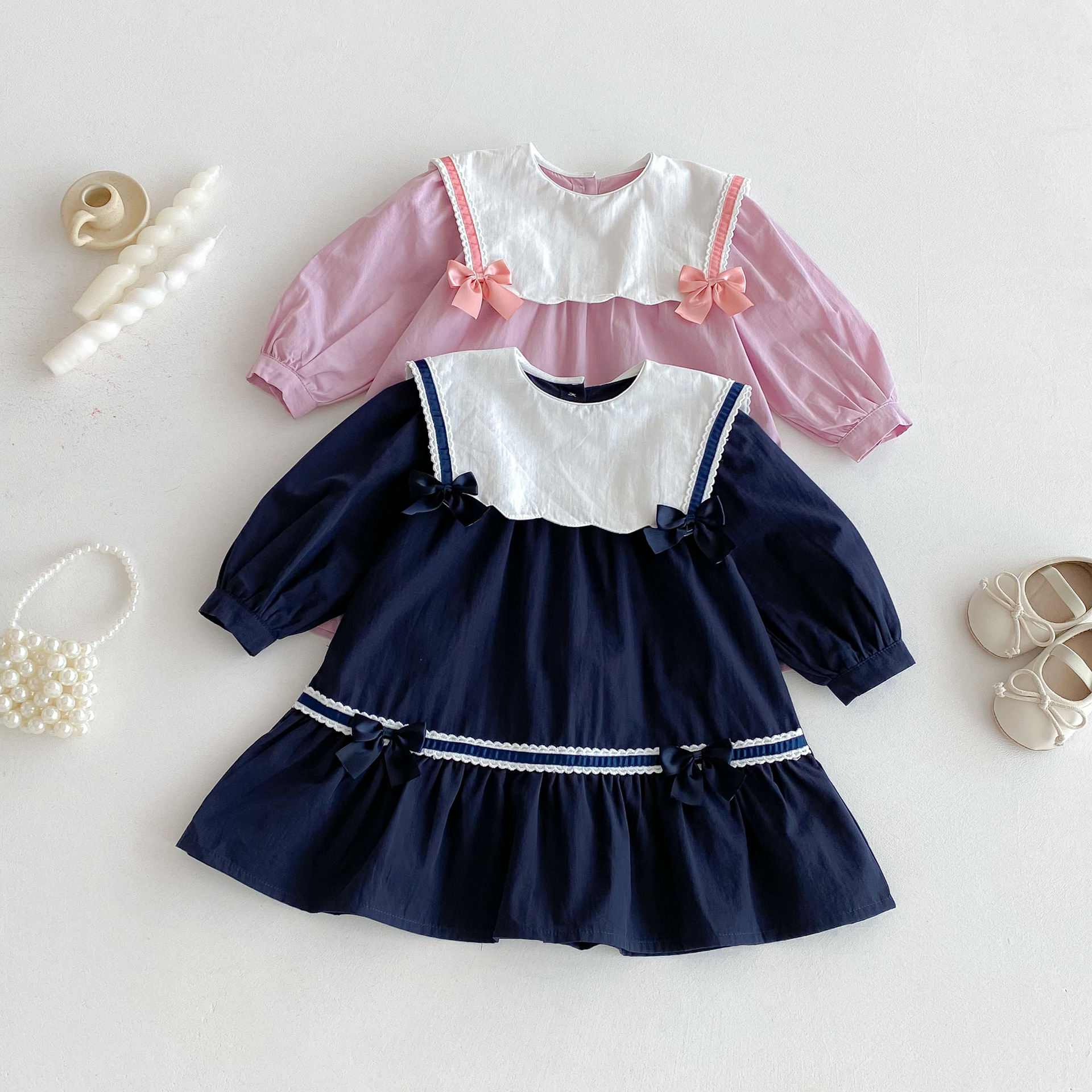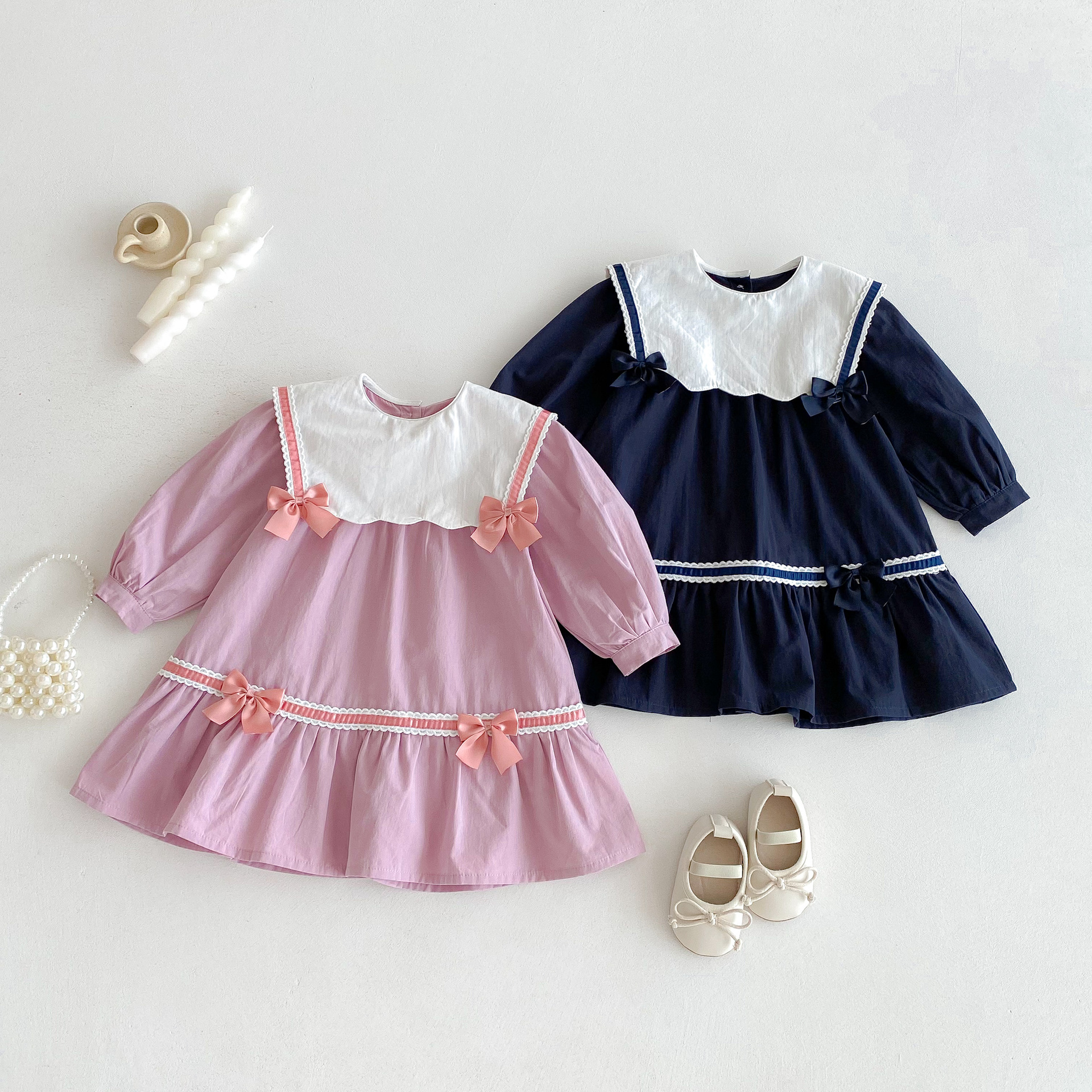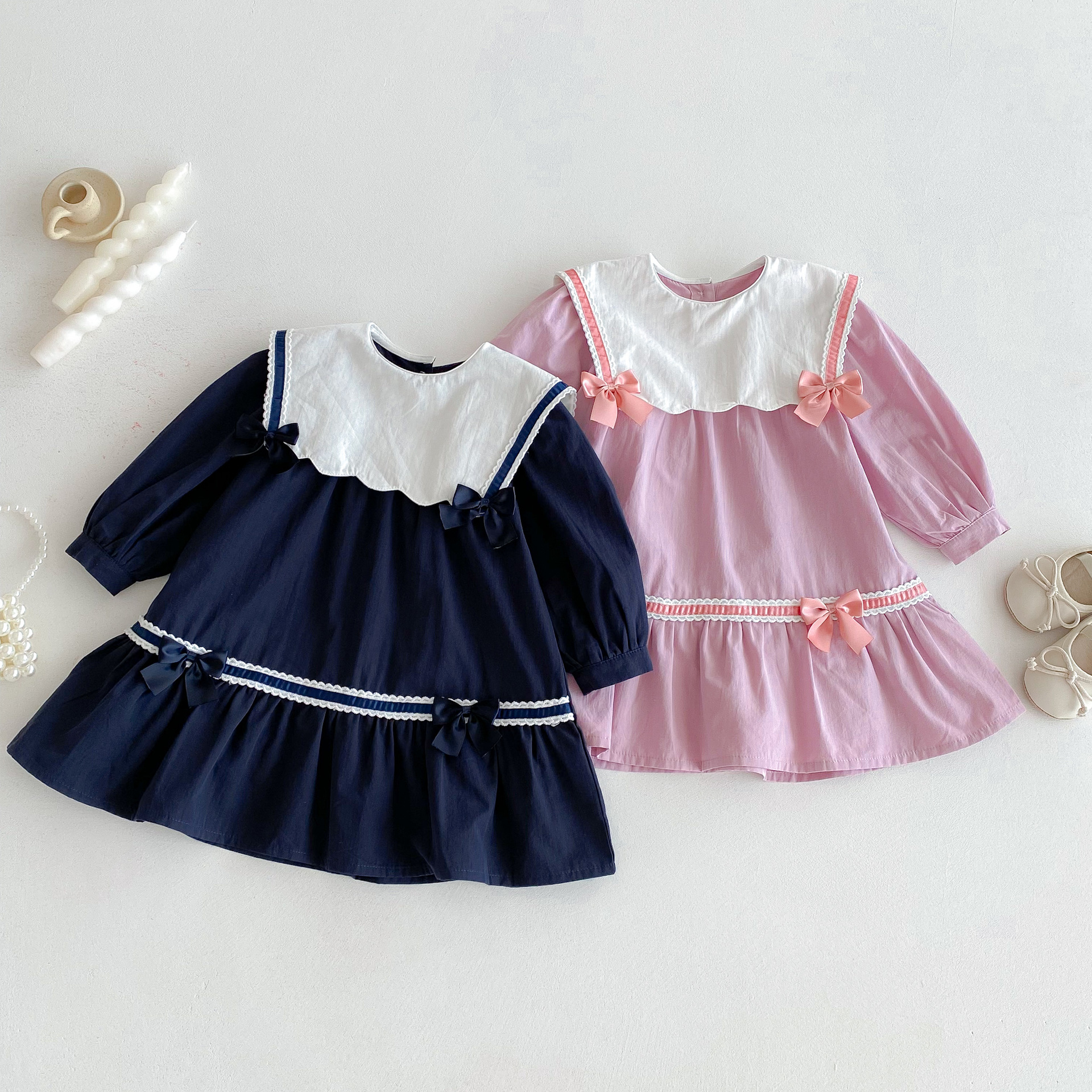 여자 드레스 가을 새로운 대학 스타일 옷깃 활 어린이 해군 칼라 아기 소녀 아동 의류 스커트스토어 가기