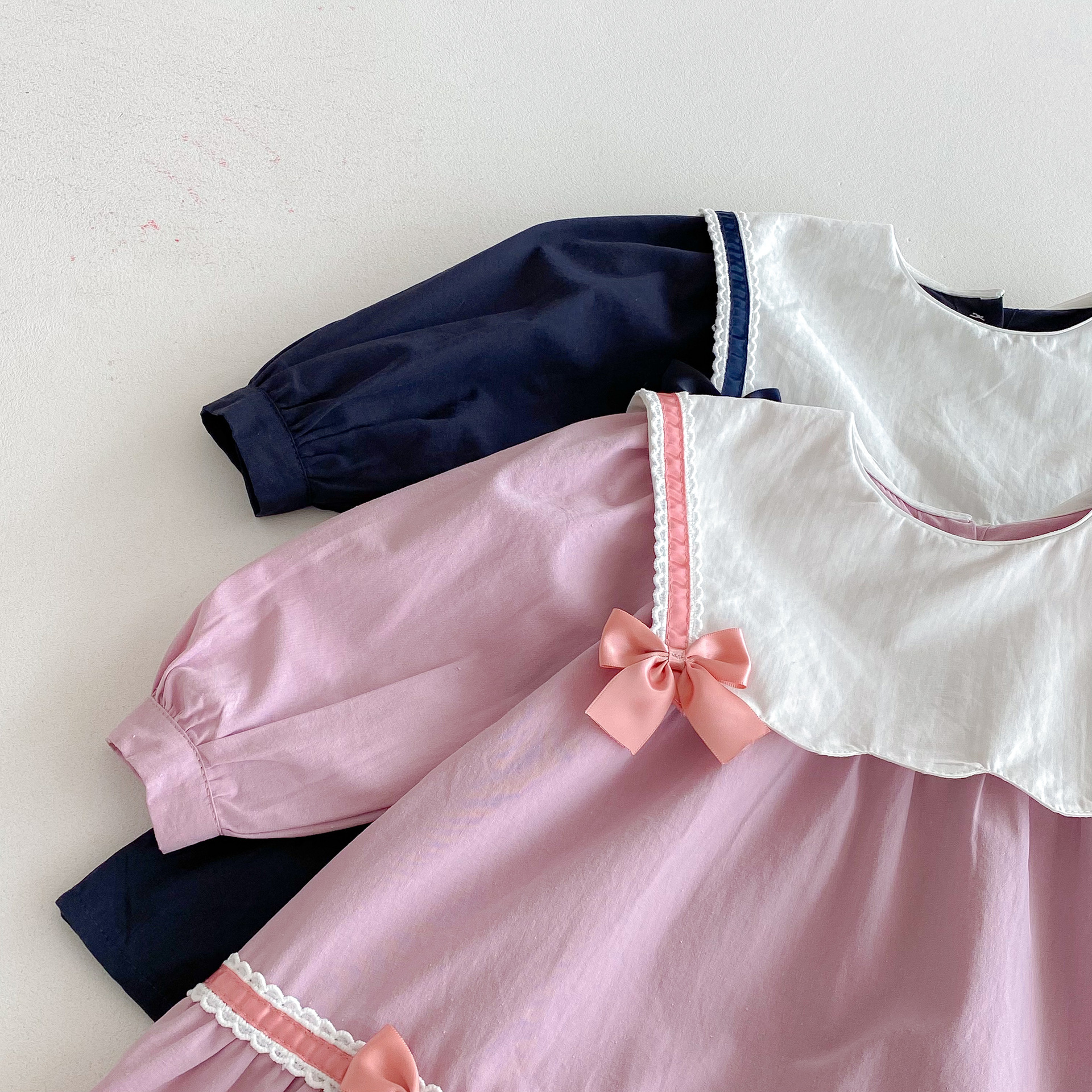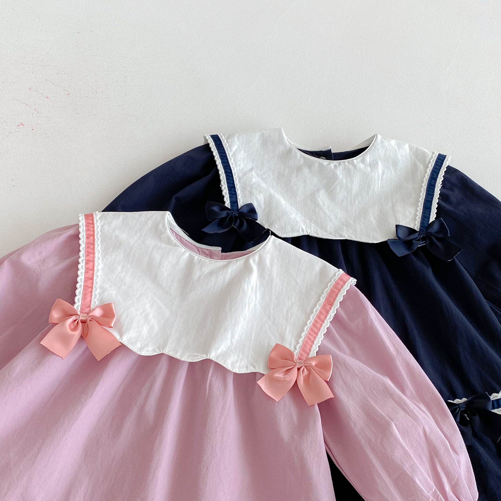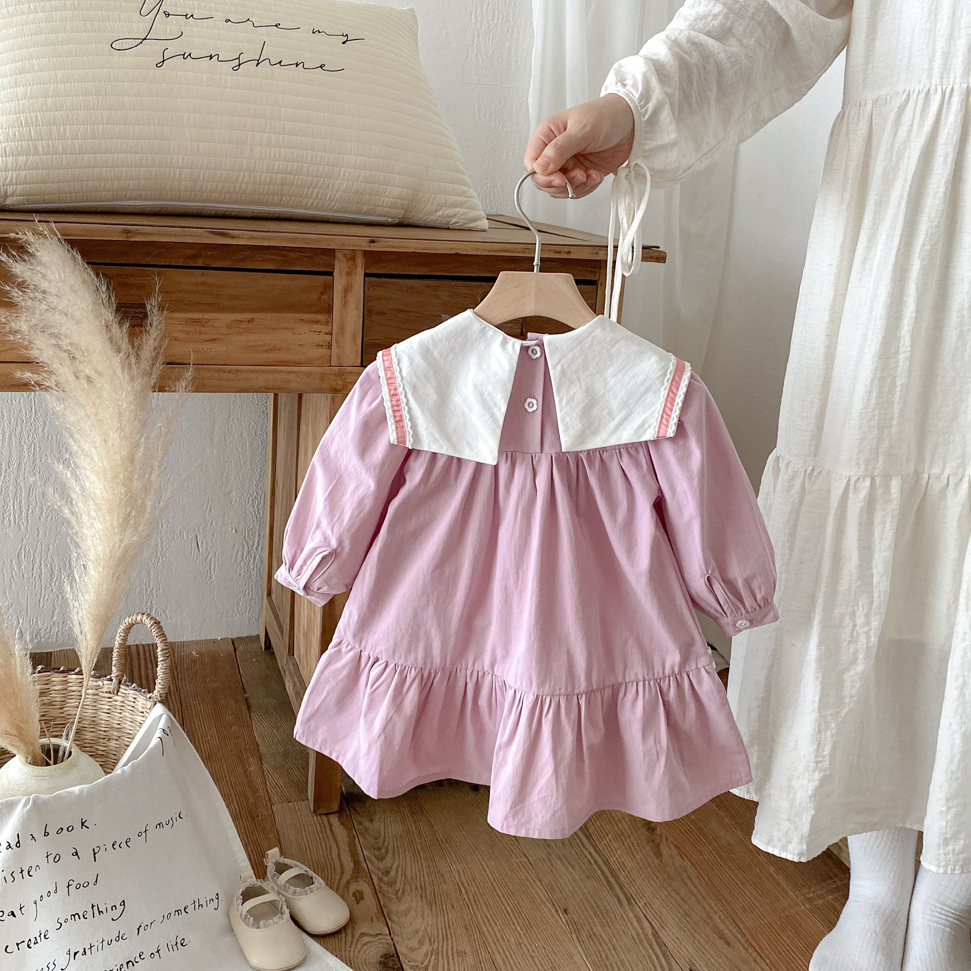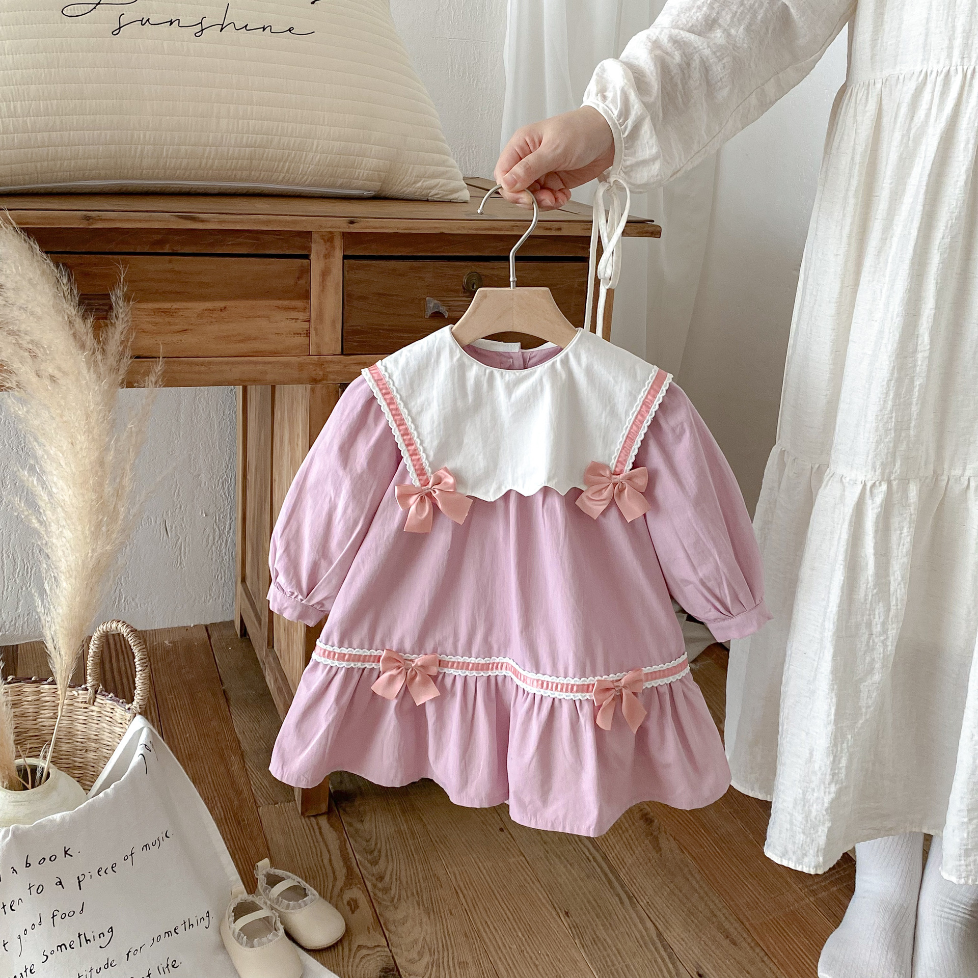 여자 드레스 가을 새로운 대학 스타일 옷깃 활 어린이 해군 칼라 아기 소녀 아동 의류 스커트스토어 가기