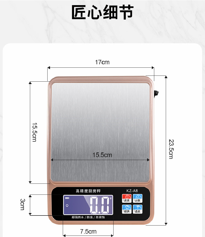 방수 주방 전자저울 고정밀 가정용 베이킹 저울 스테인리스 저울 표면 식품 그램 저울 도매 방수형