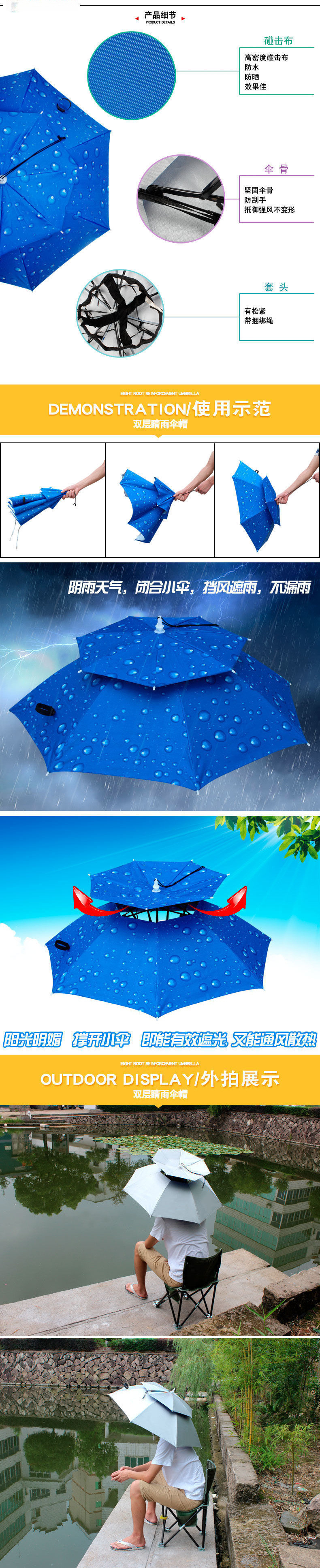 우산모자, 우산모자, 낚시모자, 태양우산, 야외차채집, 위생, 자외선차단, 모자, 접이식 대형우산