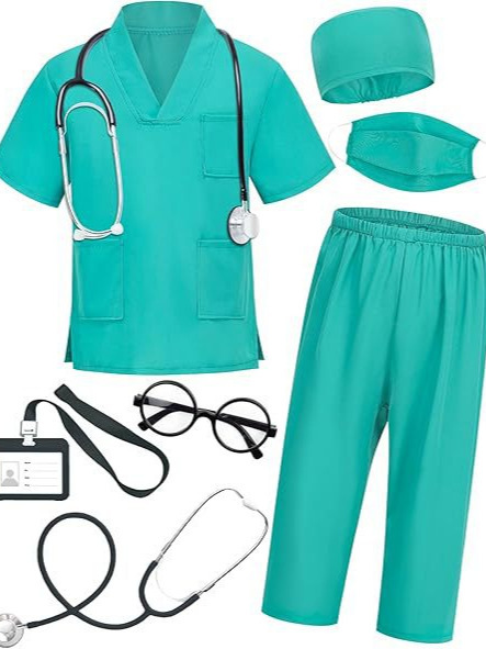 • 三兜白大褂+绿色套装+听诊器
