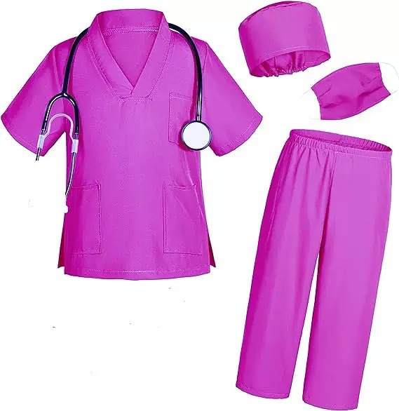 • 印花大褂+粉色手术服+听诊器
