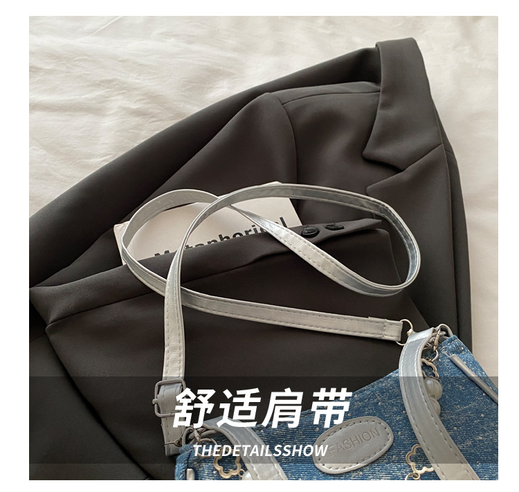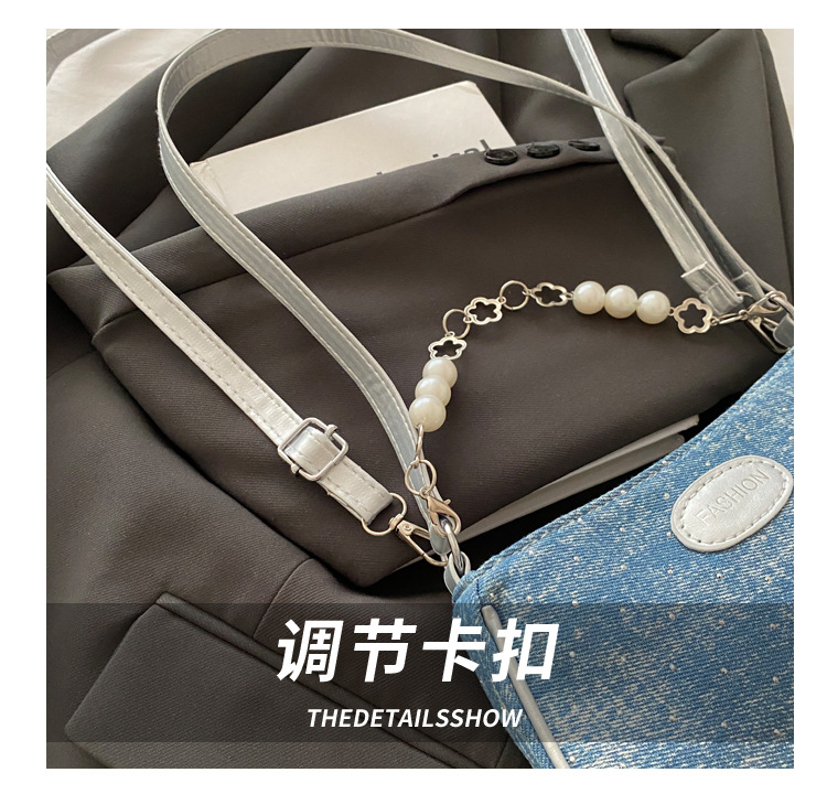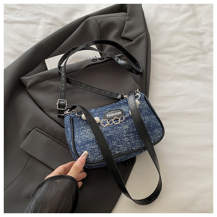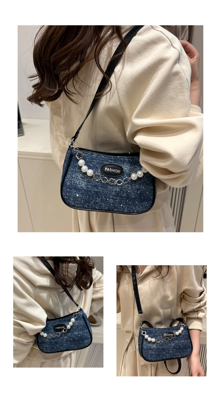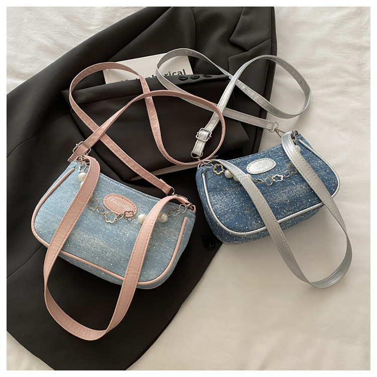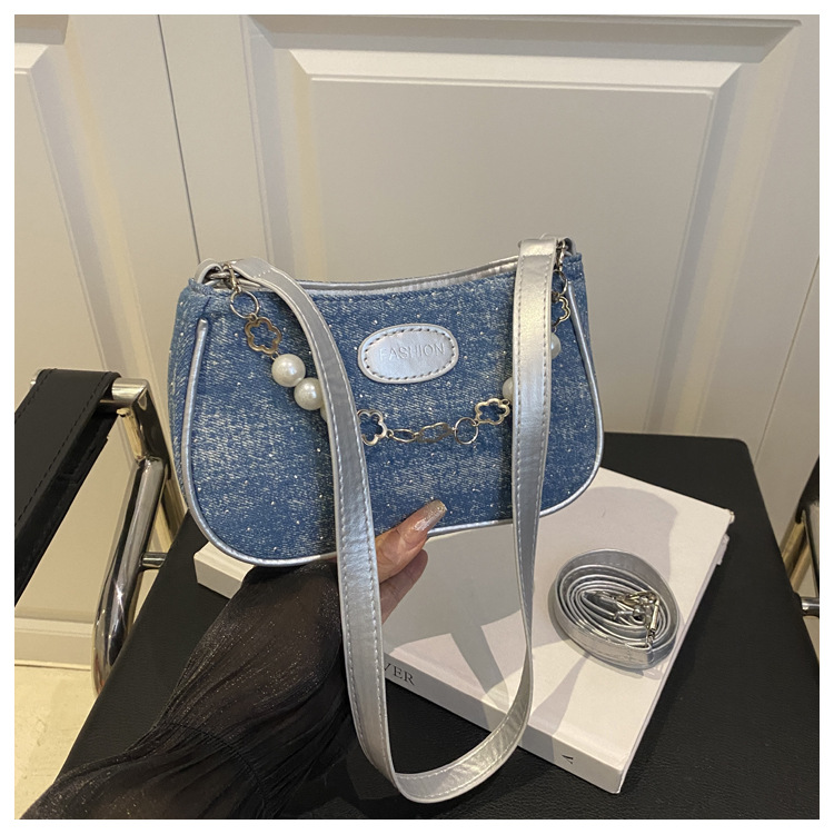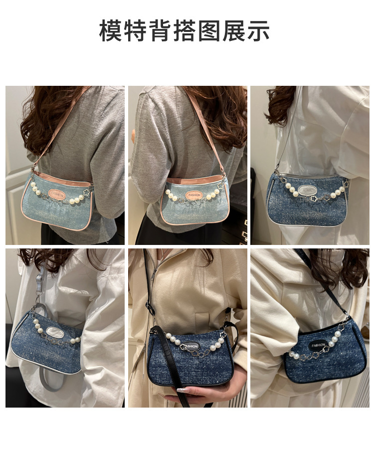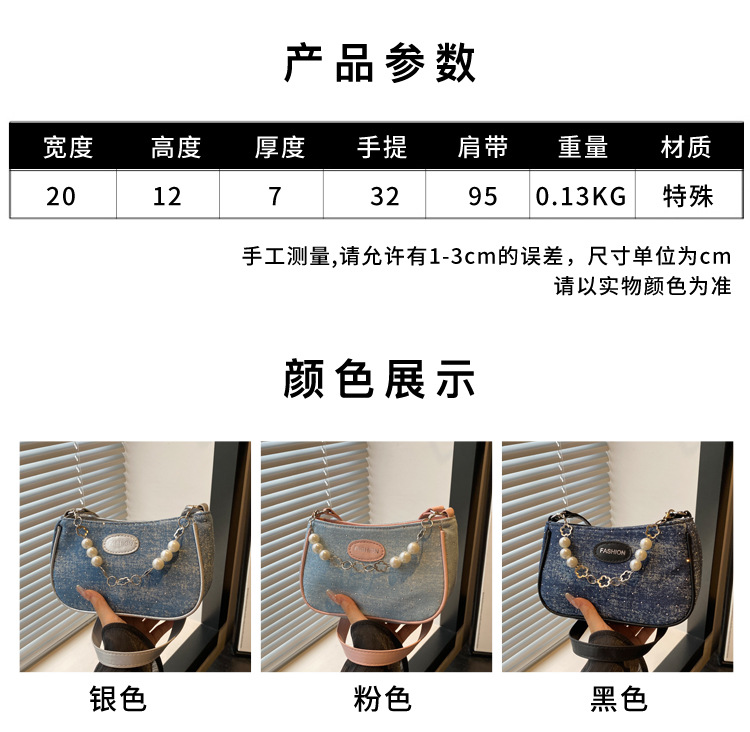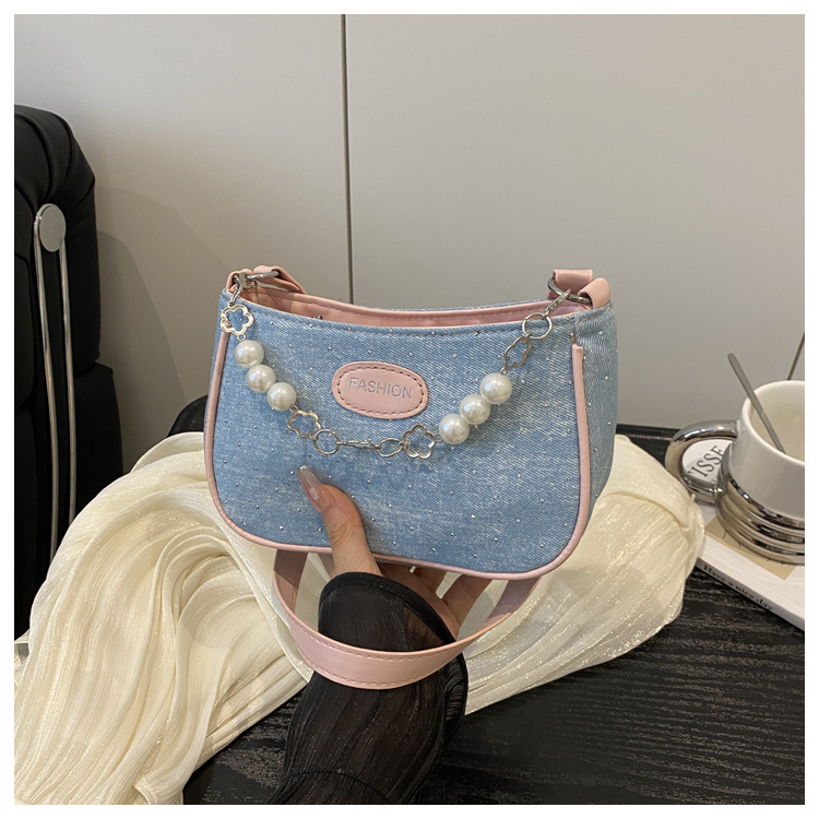데님은 올해 인기 2025 새로운 패션 심플한 진주 체인 서양식 크로스바디 싱글 숄더 겨드랑이 작은 사각형 가방