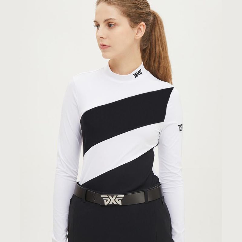 한국식 흑백 골프복 여성 스포츠 속건성 슬림 하이넥 긴팔 하의 골프 탑