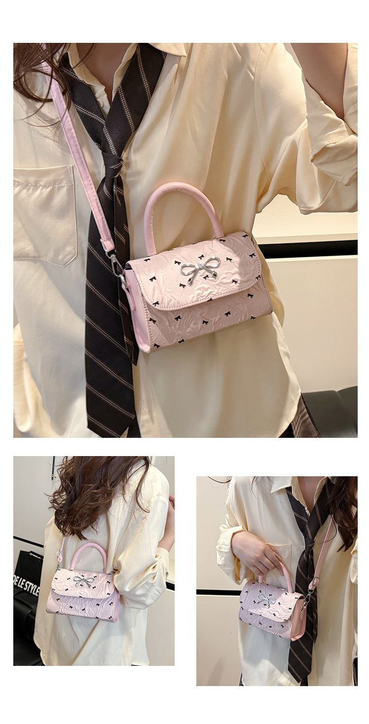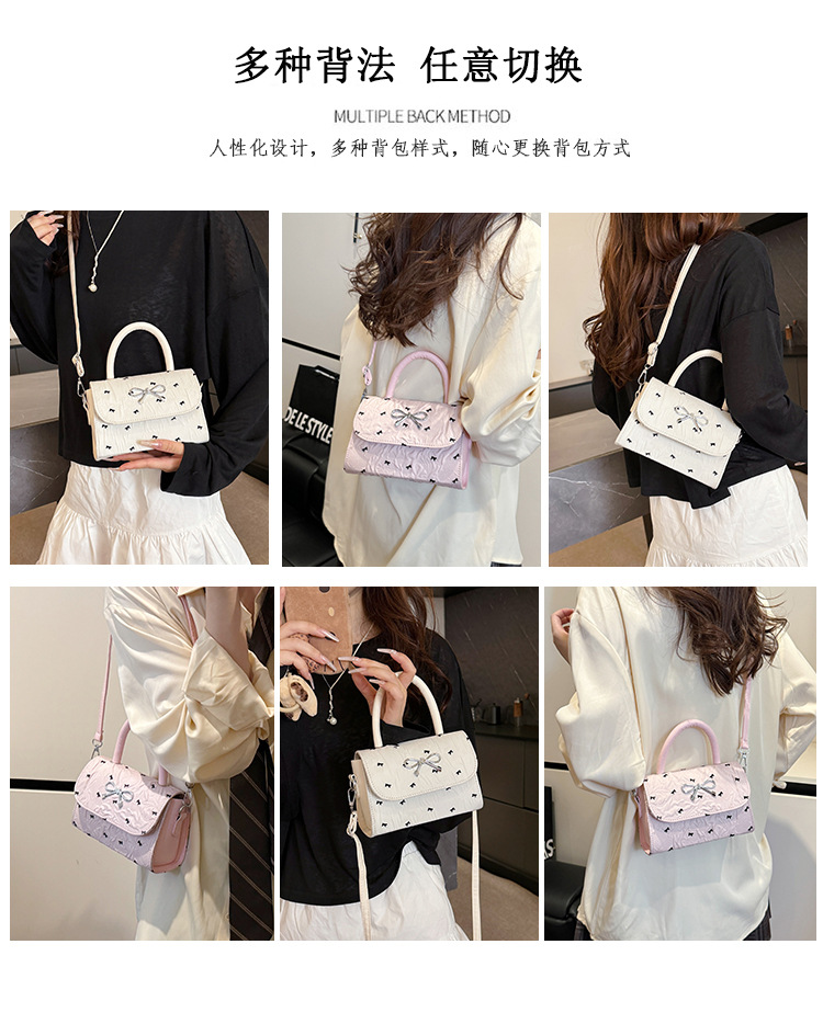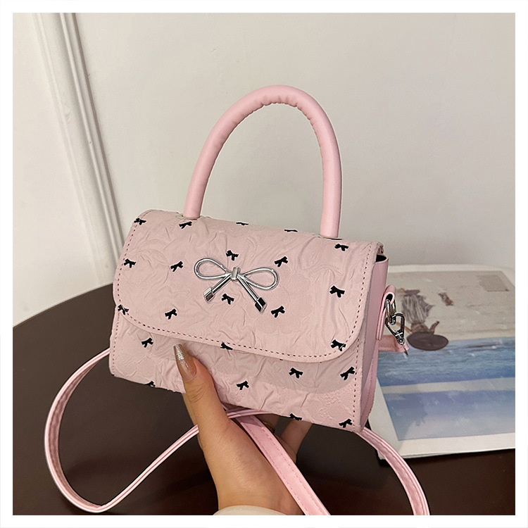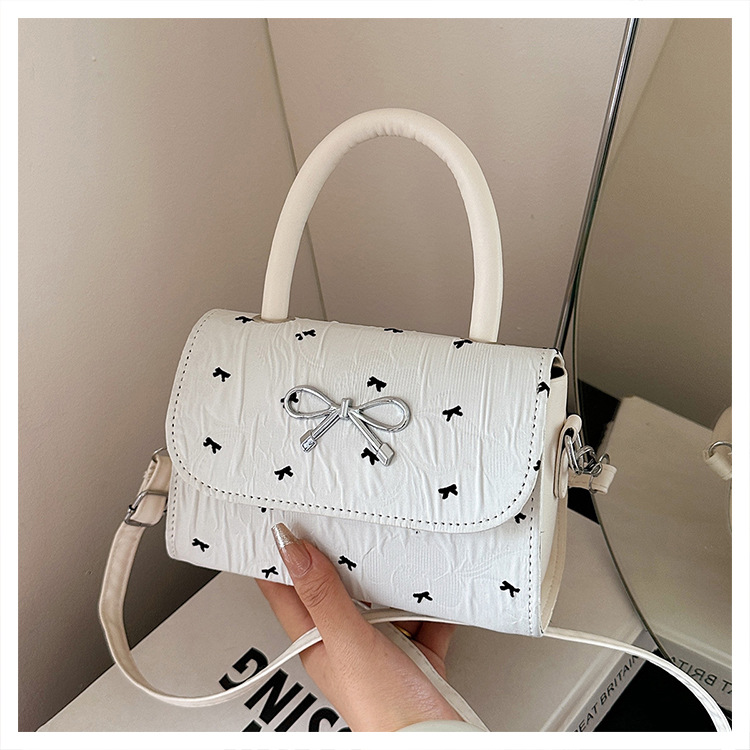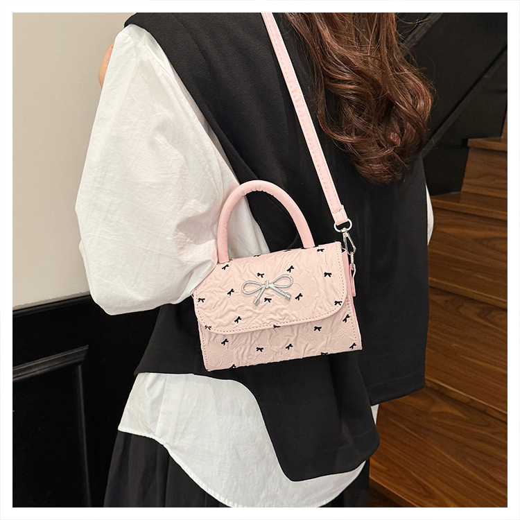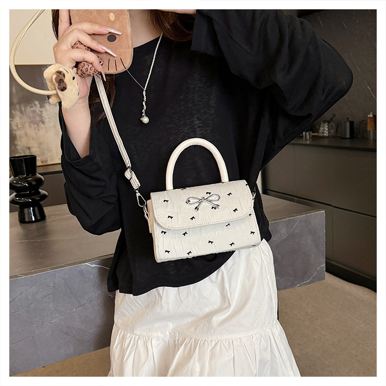 Bowknot 캐주얼 패션 2025 여름 신선하고 서양식 새로운 심플한 디자인 여성용 싱글 숄더 휴대용 소형 사각형 가방스토어 가기