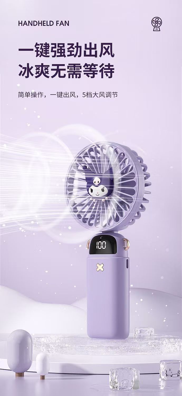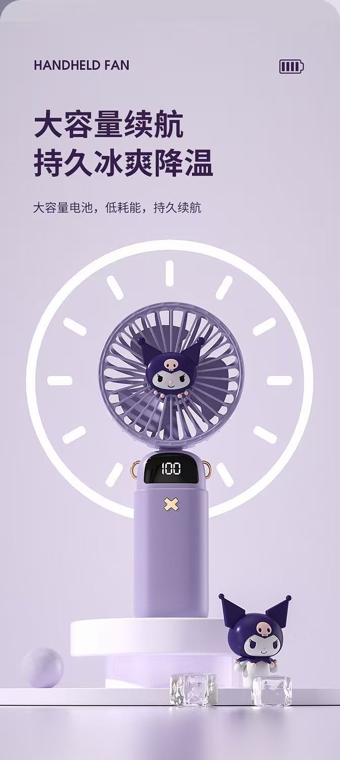 Sanrio의 새로운 휴대용 소형 팬 휴대용 무음 미니 책상 학생 수업 충전스토어 가기