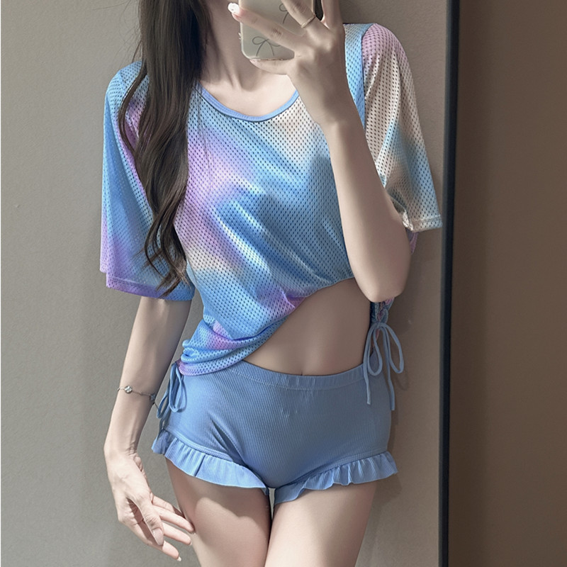 여성용 스포츠 수영복, 스플릿 3피스 블라우스, 보수적 슬리밍 배 커버, 플러스 사이즈 여성용 온천 메쉬 학생 수영복