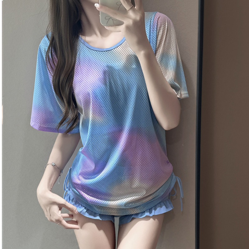 여성용 스포츠 수영복, 스플릿 3피스 블라우스, 보수적 슬리밍 배 커버, 플러스 사이즈 여성용 온천 메쉬 학생 수영복스토어 가기