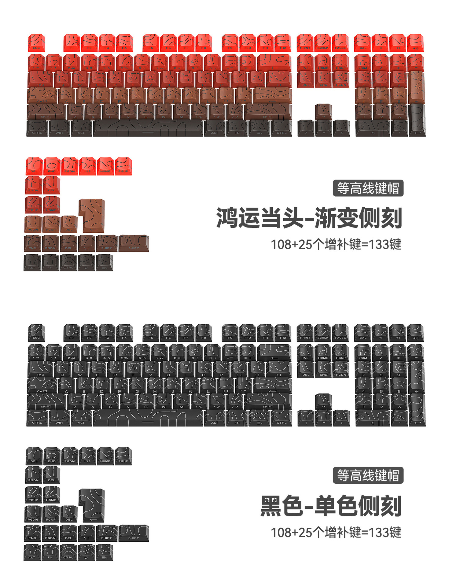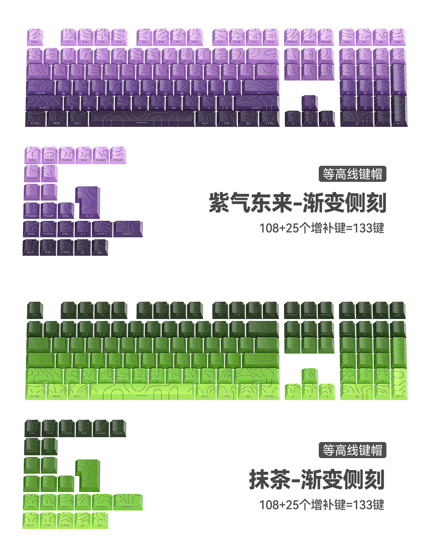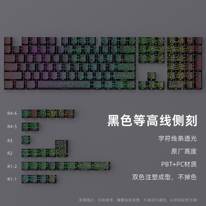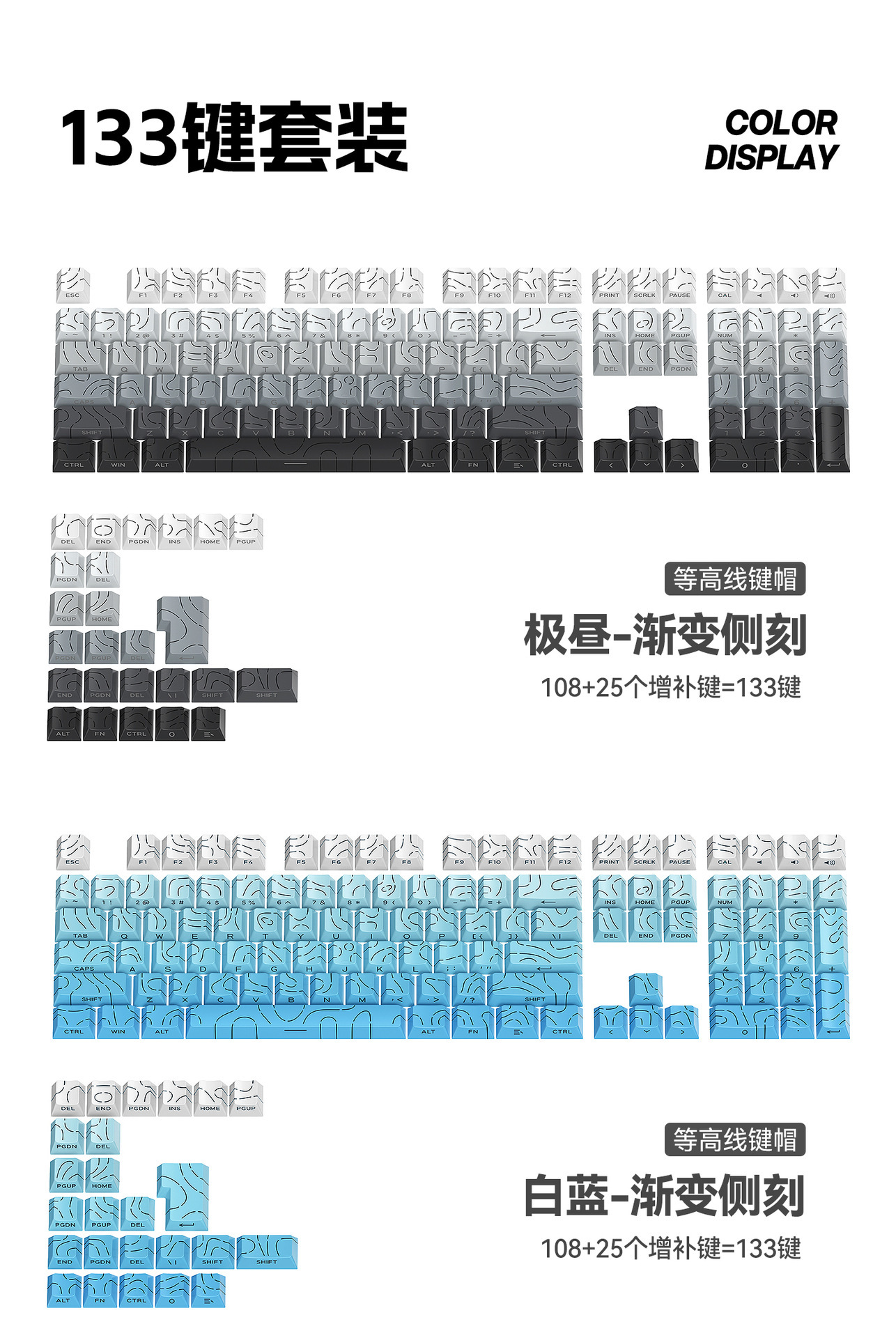 등고선 기계식 키보드 키캡 측면 새겨진 RGB 광 투과성 승화 맞춤형 적응 104 국경 간 핫 스타일 도매