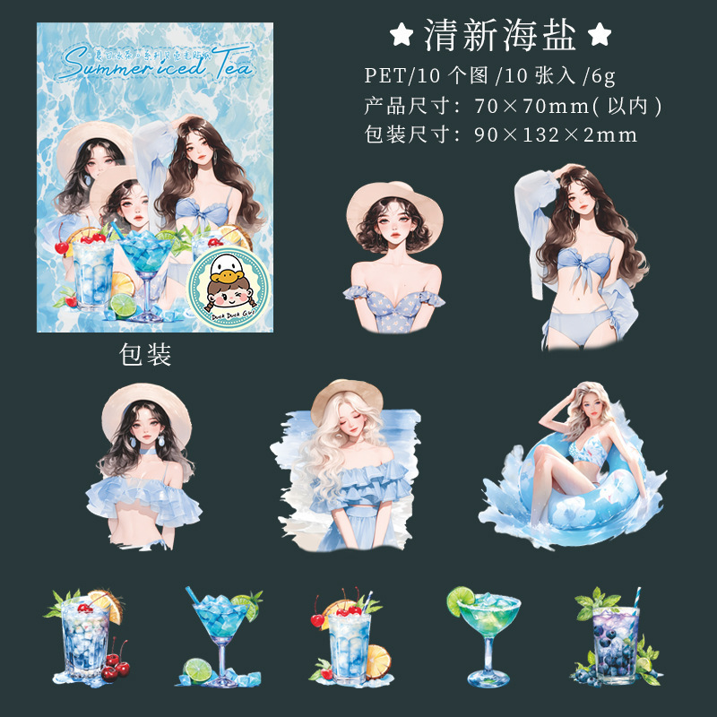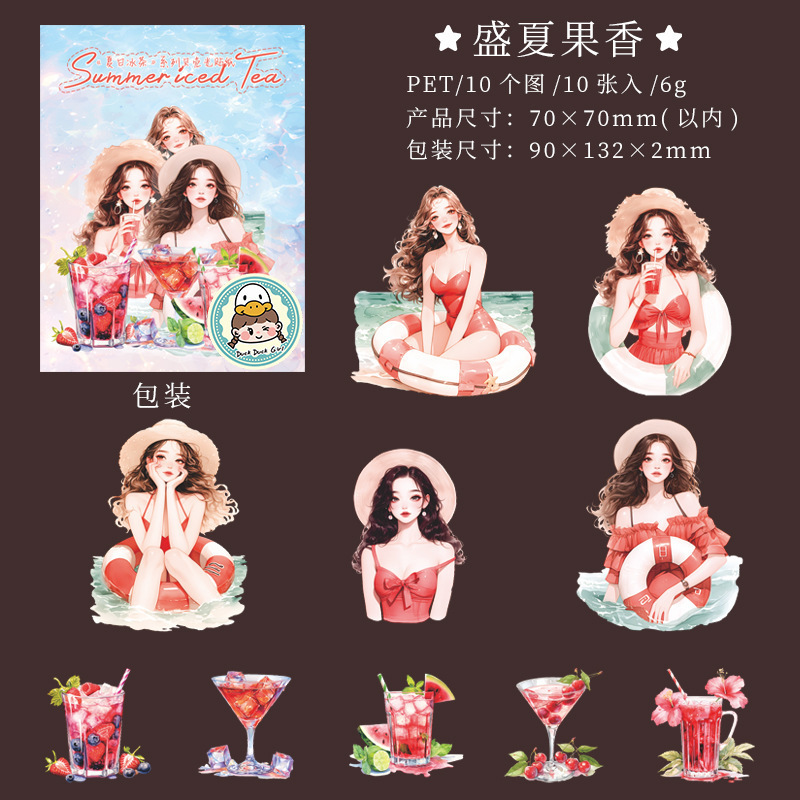 좋은 날 PET 스티커 여름 아이스 티 시리즈 여름 소녀 테마 핸드북 소재 10장 6가지 스타일