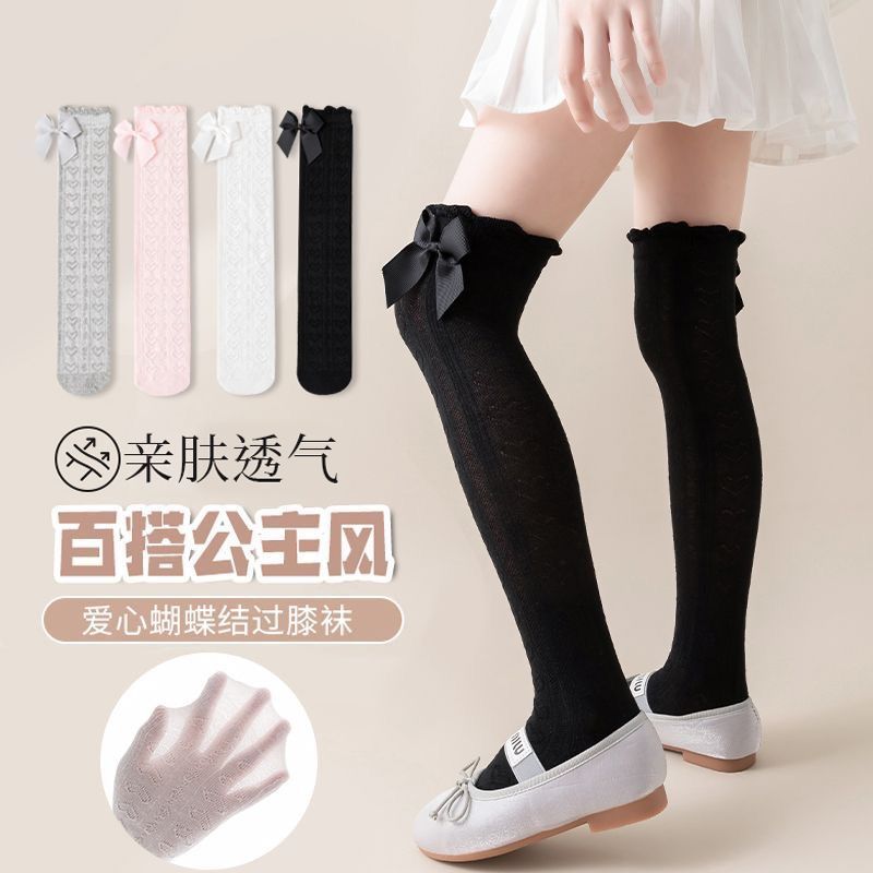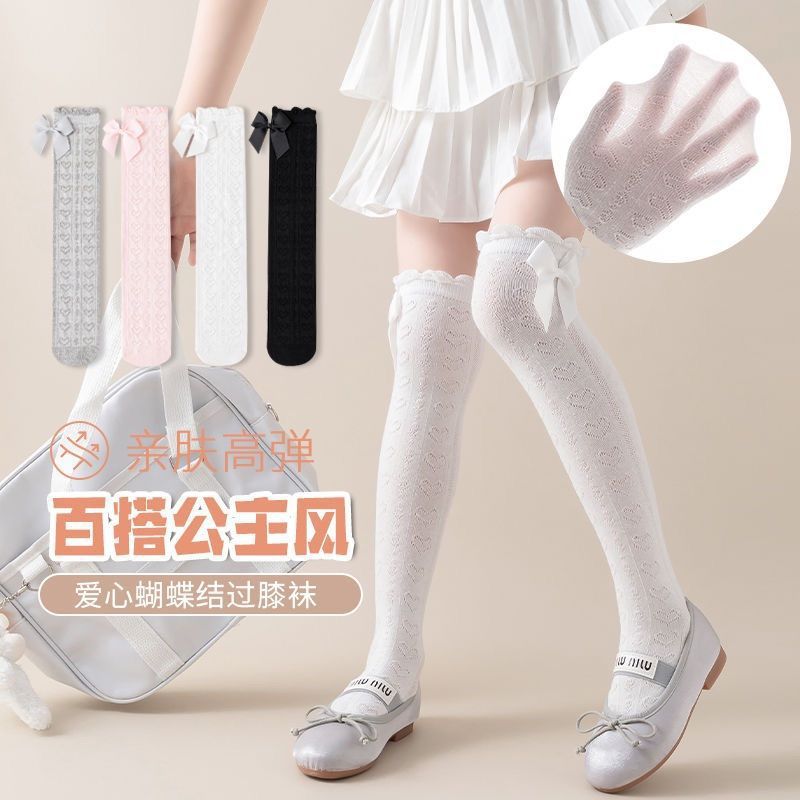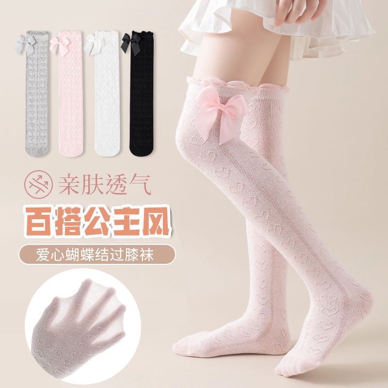 여름 어린이 무릎 위 스타킹 얇은 메쉬 통기성 소녀 활 공주 양말 로리타 레이스 양말