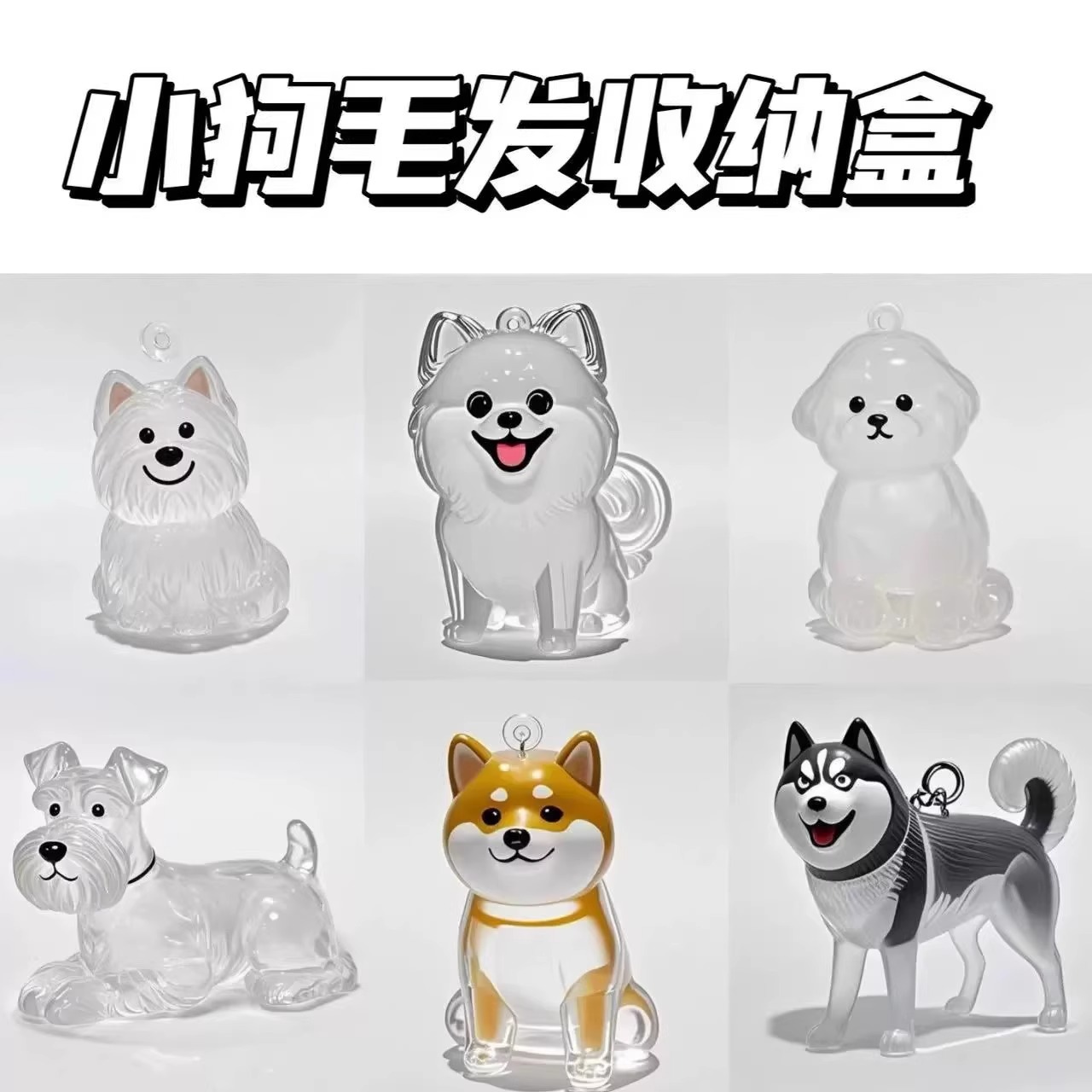 귀여운 강아지 투명 머리 보관 상자 동물 헤어 볼 캡슐 펜던트 장식 기념품 방진 상자 수집 장난감스토어 가기