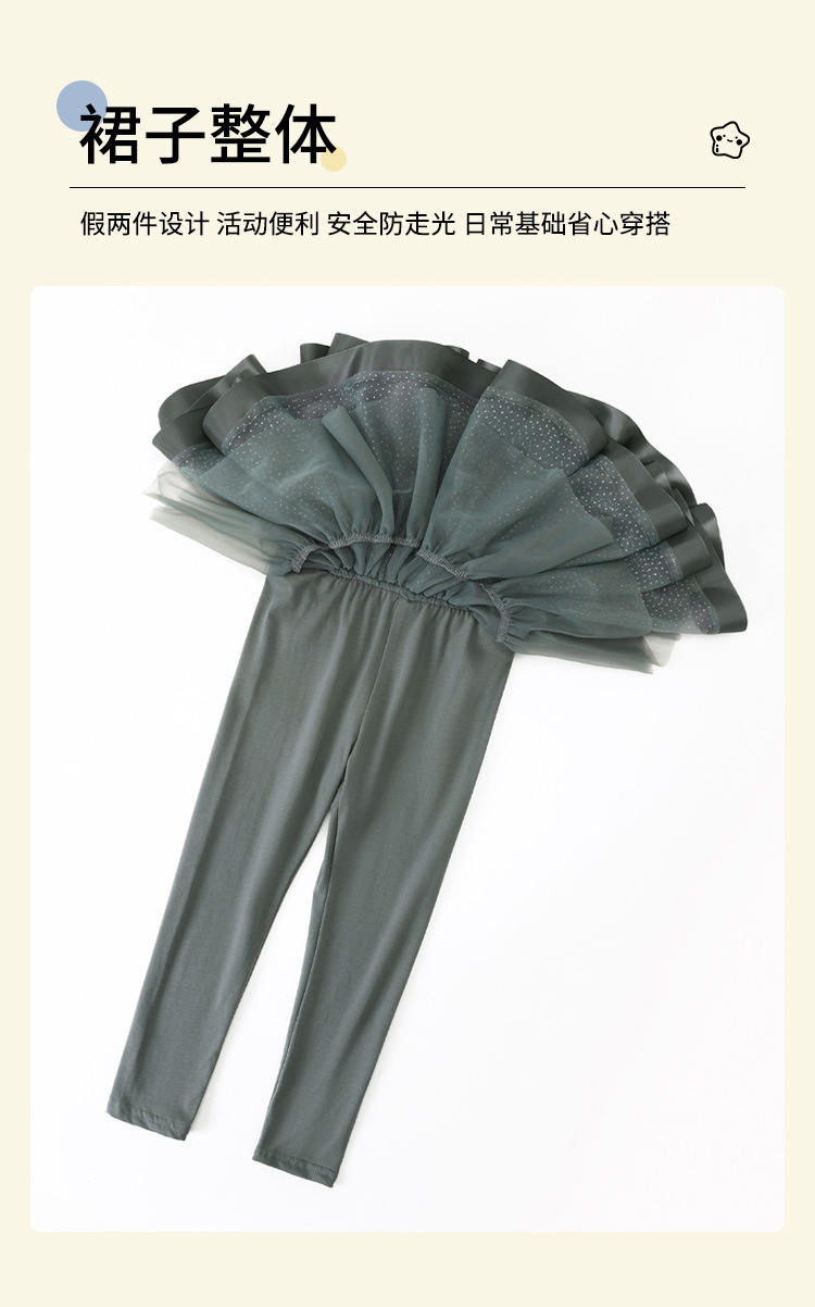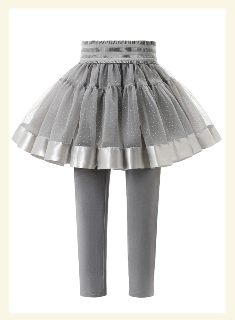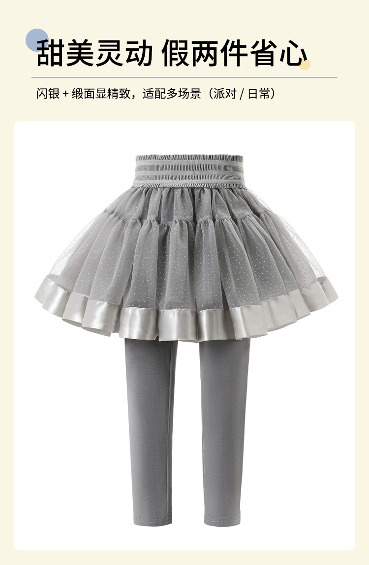 가을 여아용 투피스 스타일 레깅스 스커트, 회색 바지, 여아용 레깅스, 여성용 외출용 메쉬 퍼프 팬츠