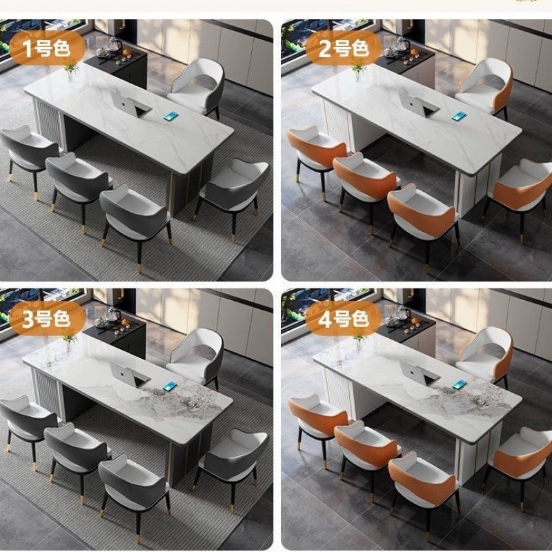 현대적인 심플한 슬레이트 티 테이블과 의자 조합 사무실 티 테이블 일체형 라이트 럭셔리 티 테이블 분할 아일랜드 테이블 세트