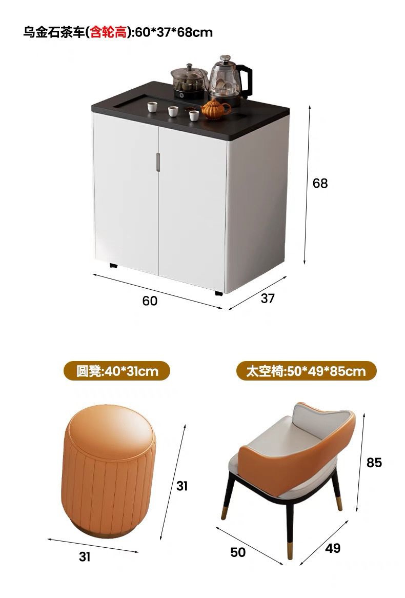 • 테이블 + 티카트 + 메인 등받이 의자 3개 + 등자 2개 [80% 선택]