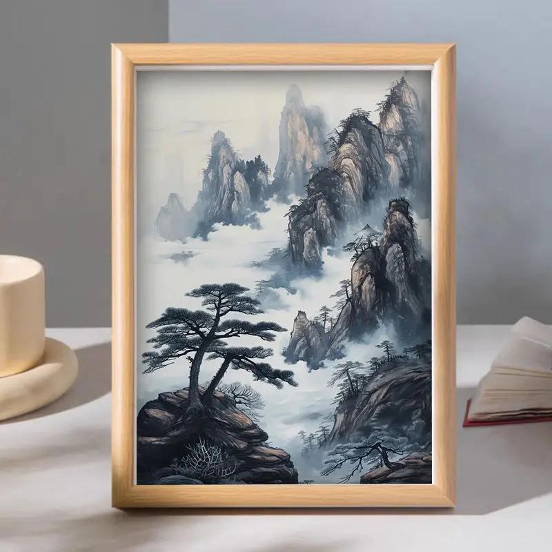 중국 스타일 수묵화 데스크탑 장식품 나무 사진 프레임 자유로운 풍경 장식 선물스토어 가기