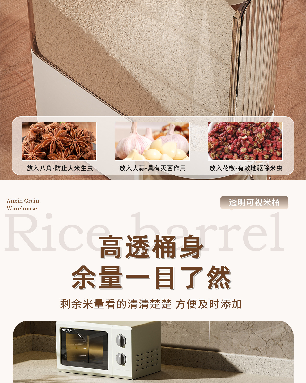 쌀통, 방충 및 방습 밀봉 쌀통, 가정용 쌀국수, 쌀보관함, 쌀보관함, 잡곡 식품등급 쌀통