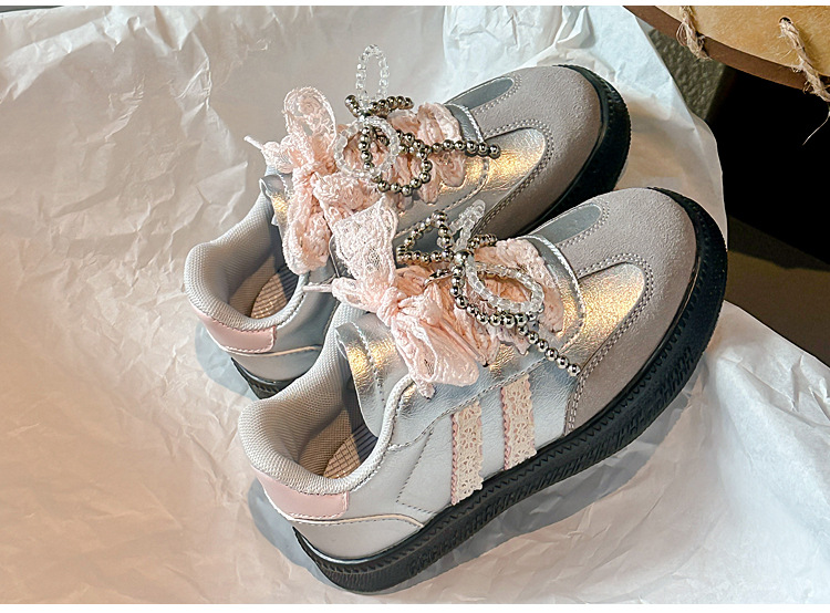 2025 봄 신작 아동화, 여아 캐주얼화, 한국 패션 레이스 보우 아동 도덕훈련화스토어 가기