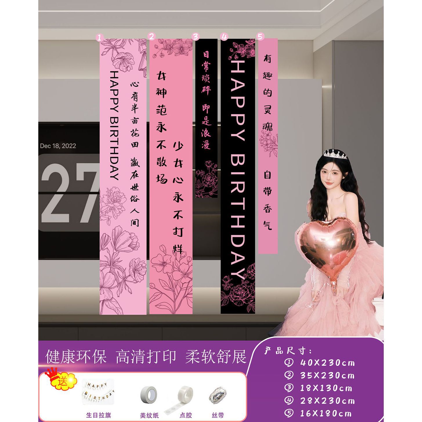 생일 배너 걸이 천 파티 장식 공주 부자가 되어 사진 소품 의식 장면 레이아웃스토어 가기