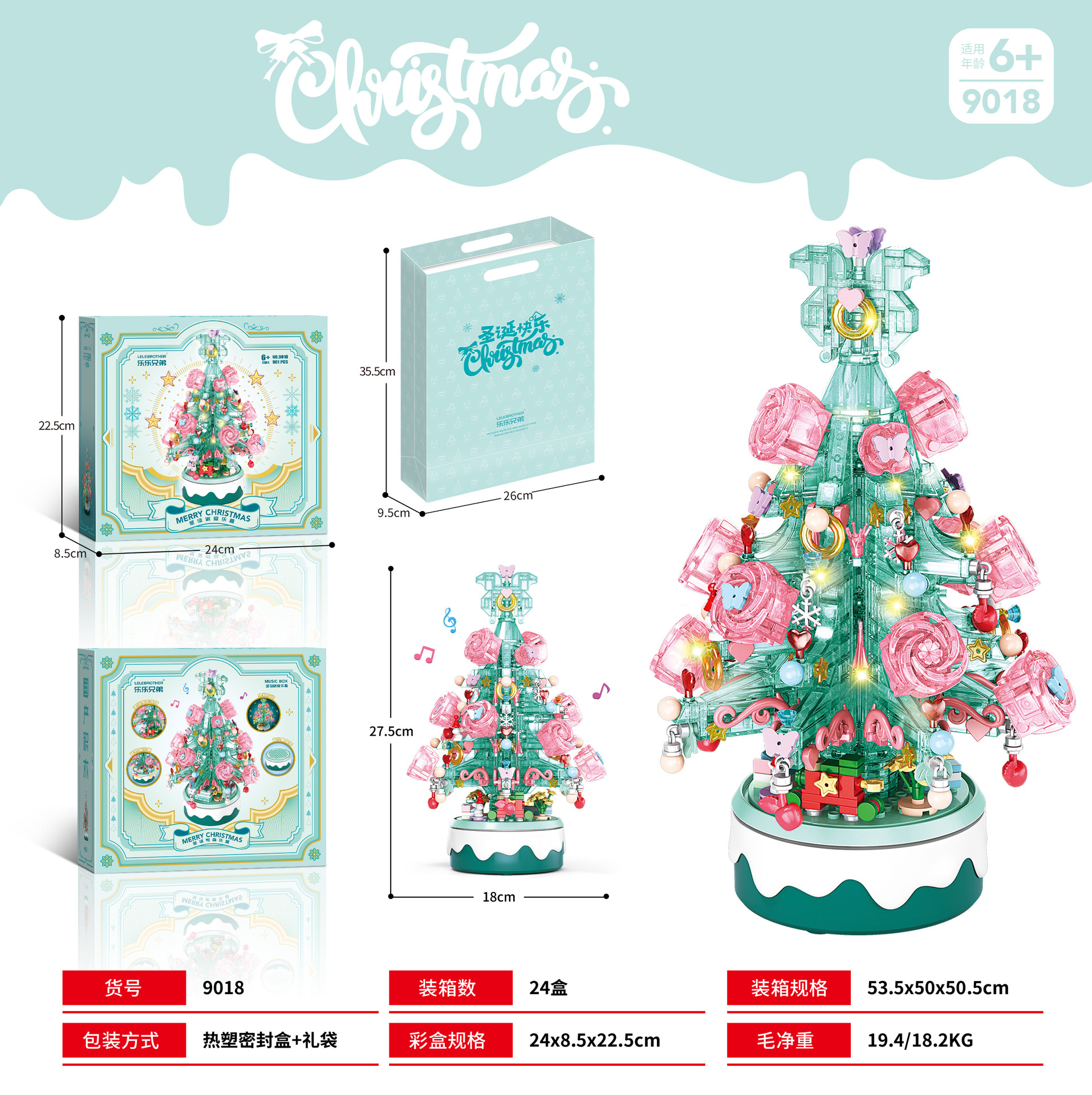 국경 간 새로운 크리스탈 조명 크리스마스 트리 회전 뮤직 박스 조립 장난감 작은 입자 빌딩 블록 크리스마스 선물스토어 가기
