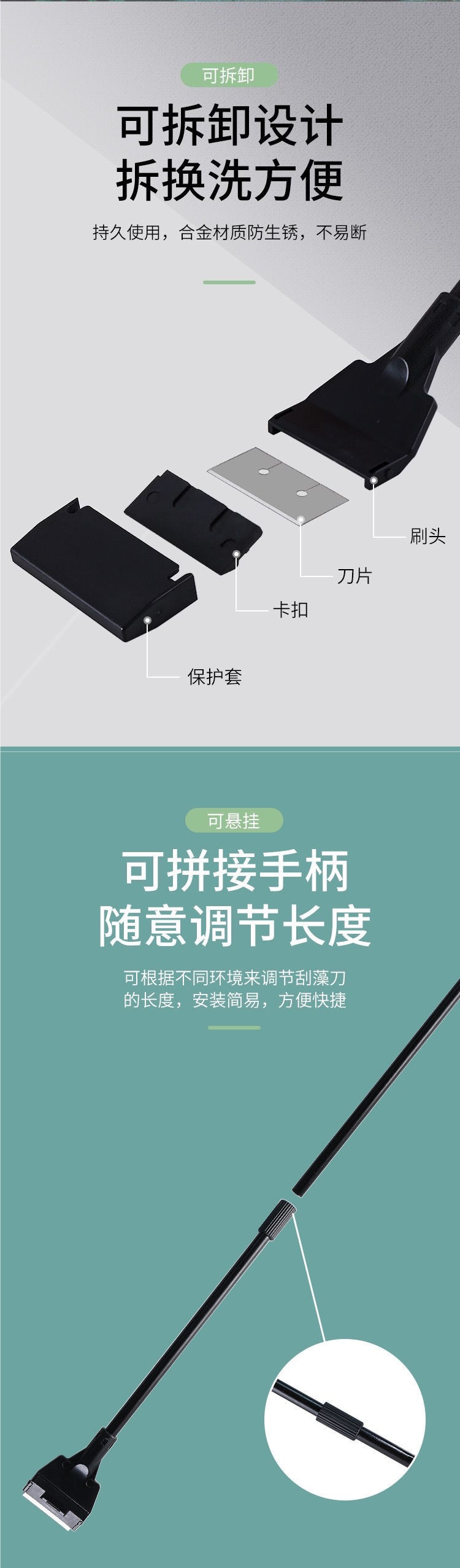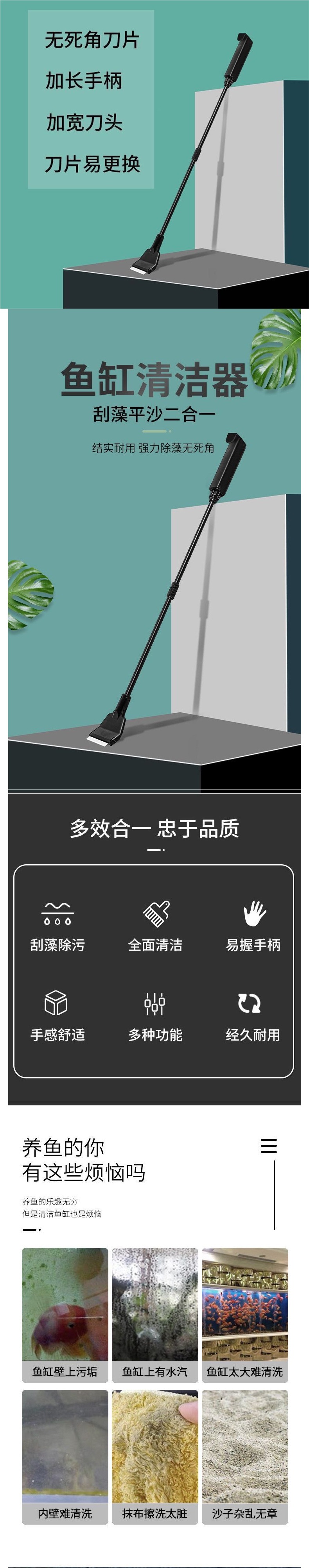 수초 수조 해조류 스크레이퍼, 작은 데드 코너 브러시, 긴 손잡이 청소 도구
