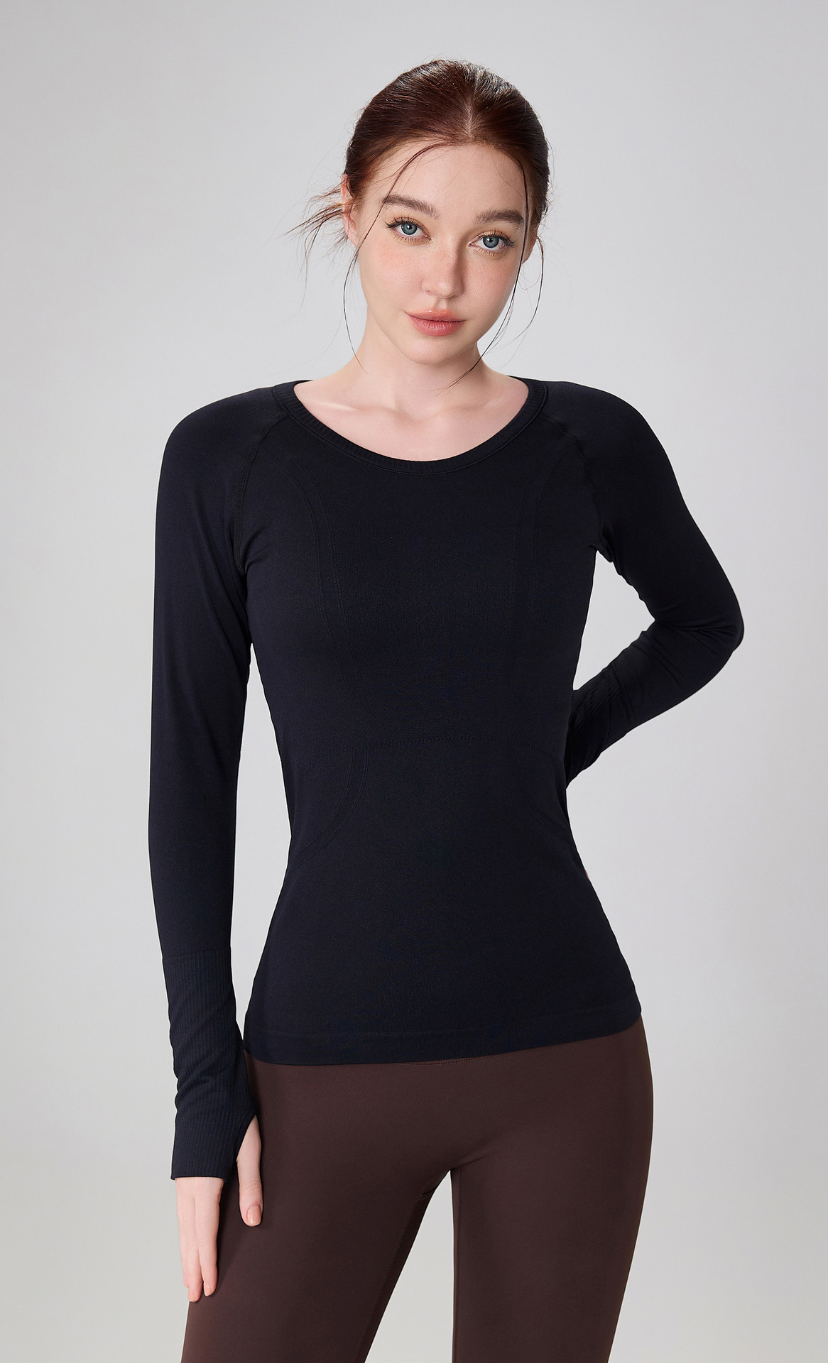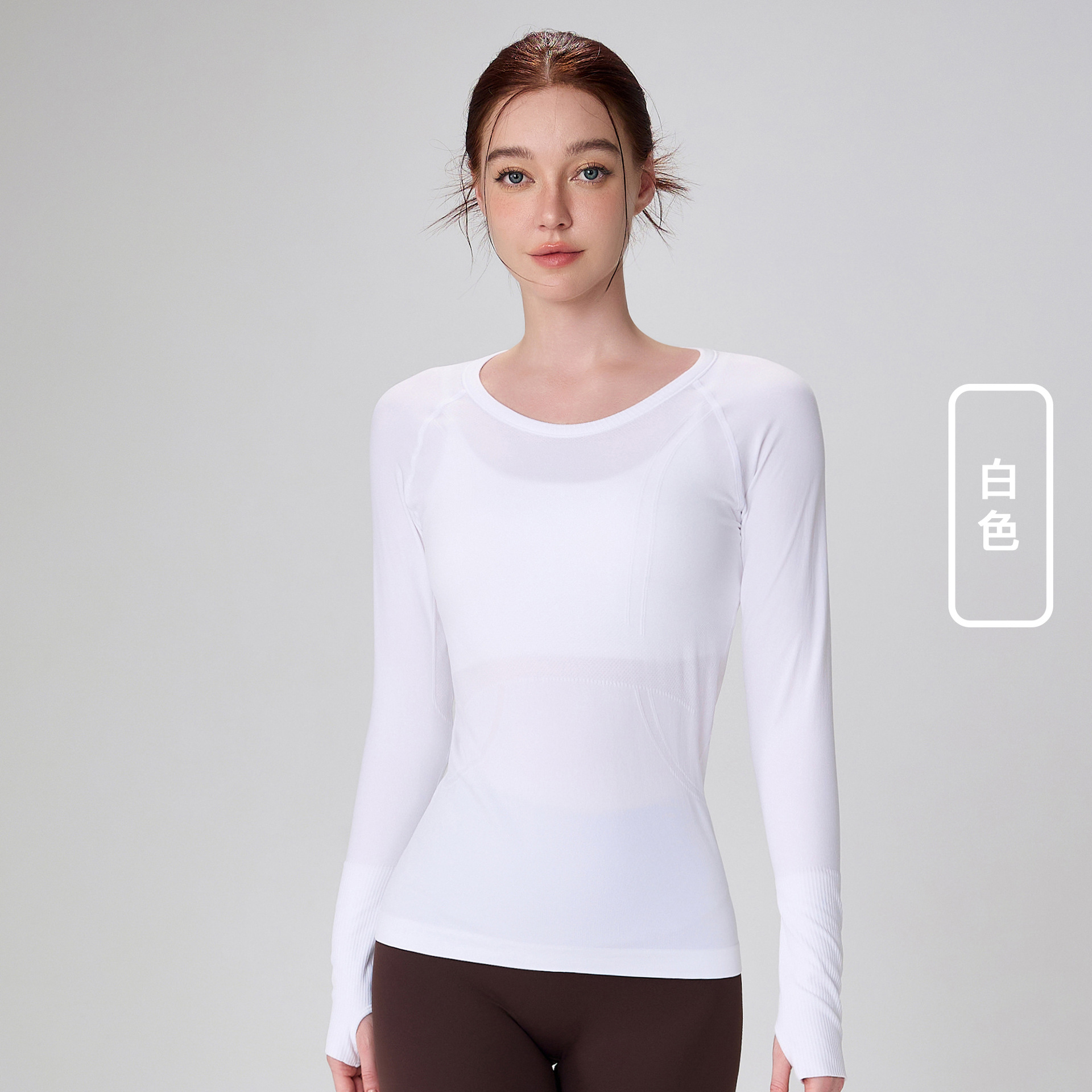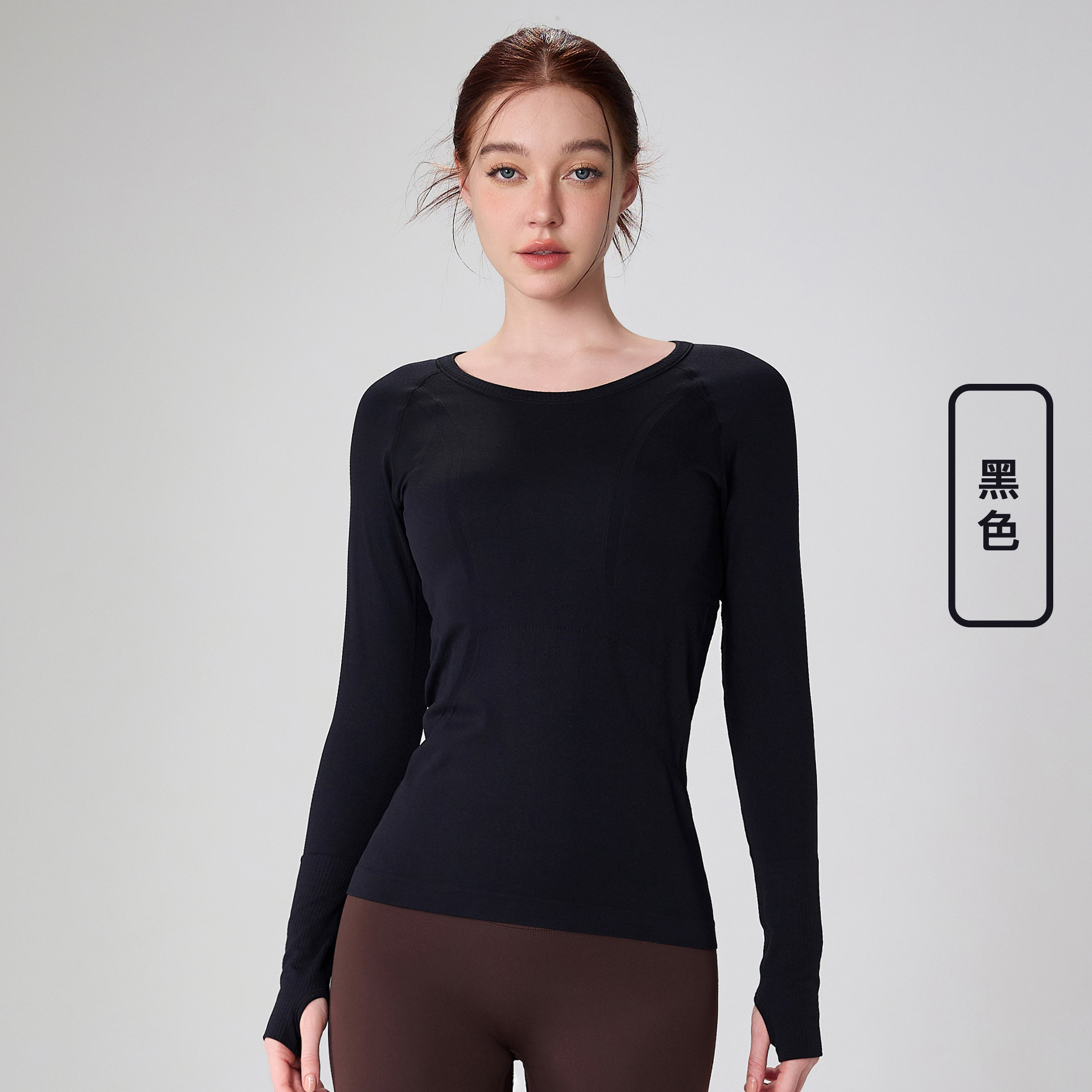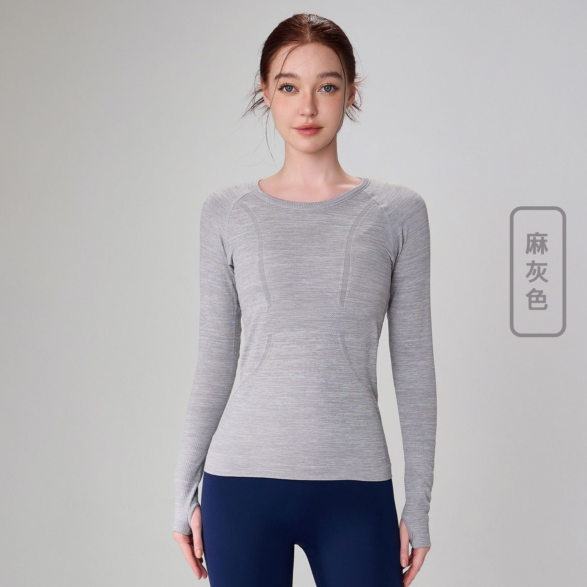 무봉제 요가복 상의 스포츠웨어 라운드넥 슬림핏 흡습 발한 피트니스복 여성용 가을 긴팔 통기성 운동복