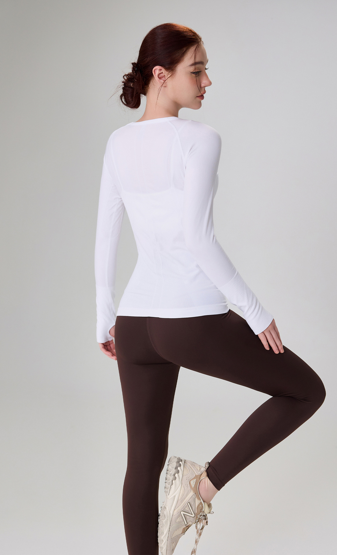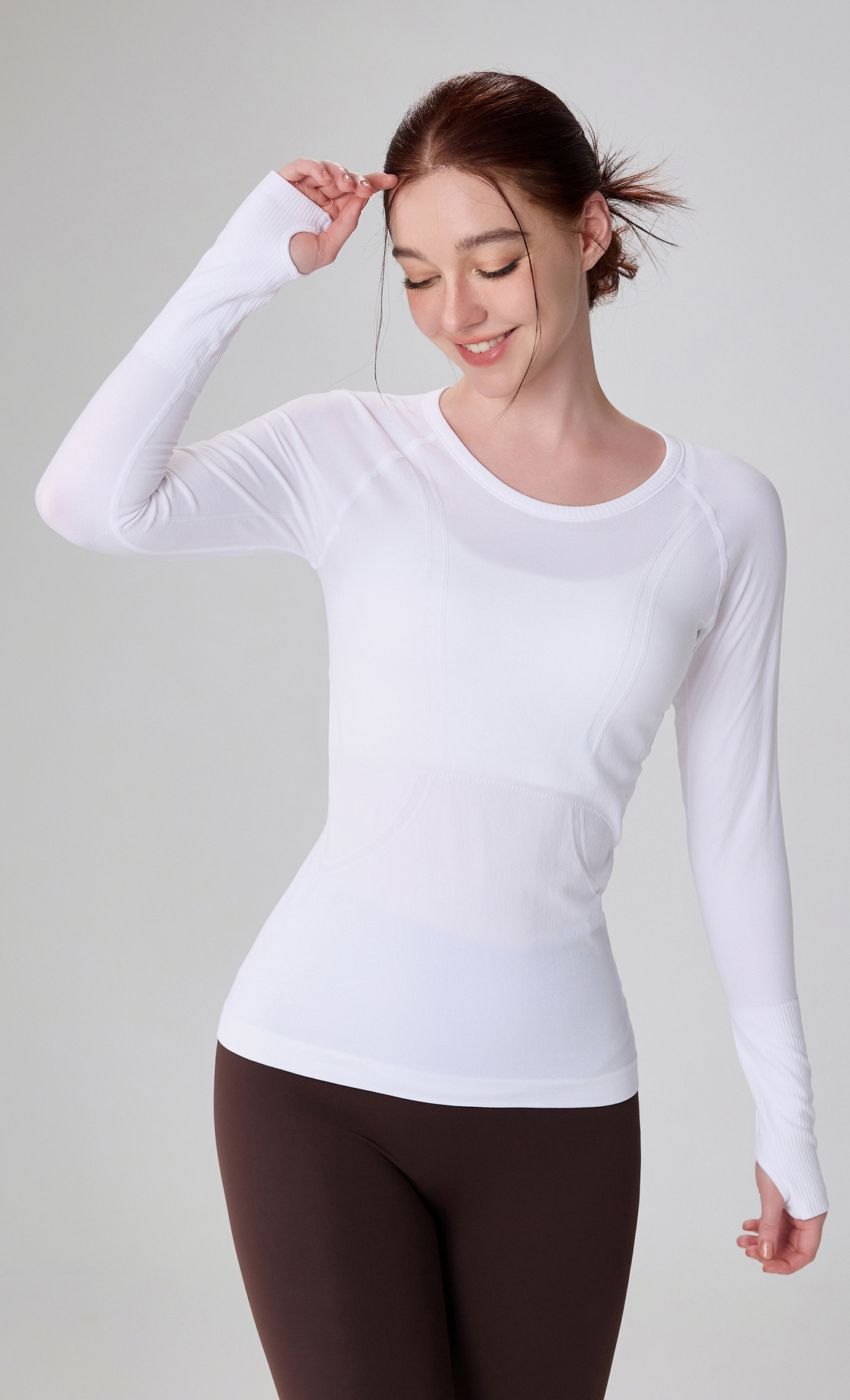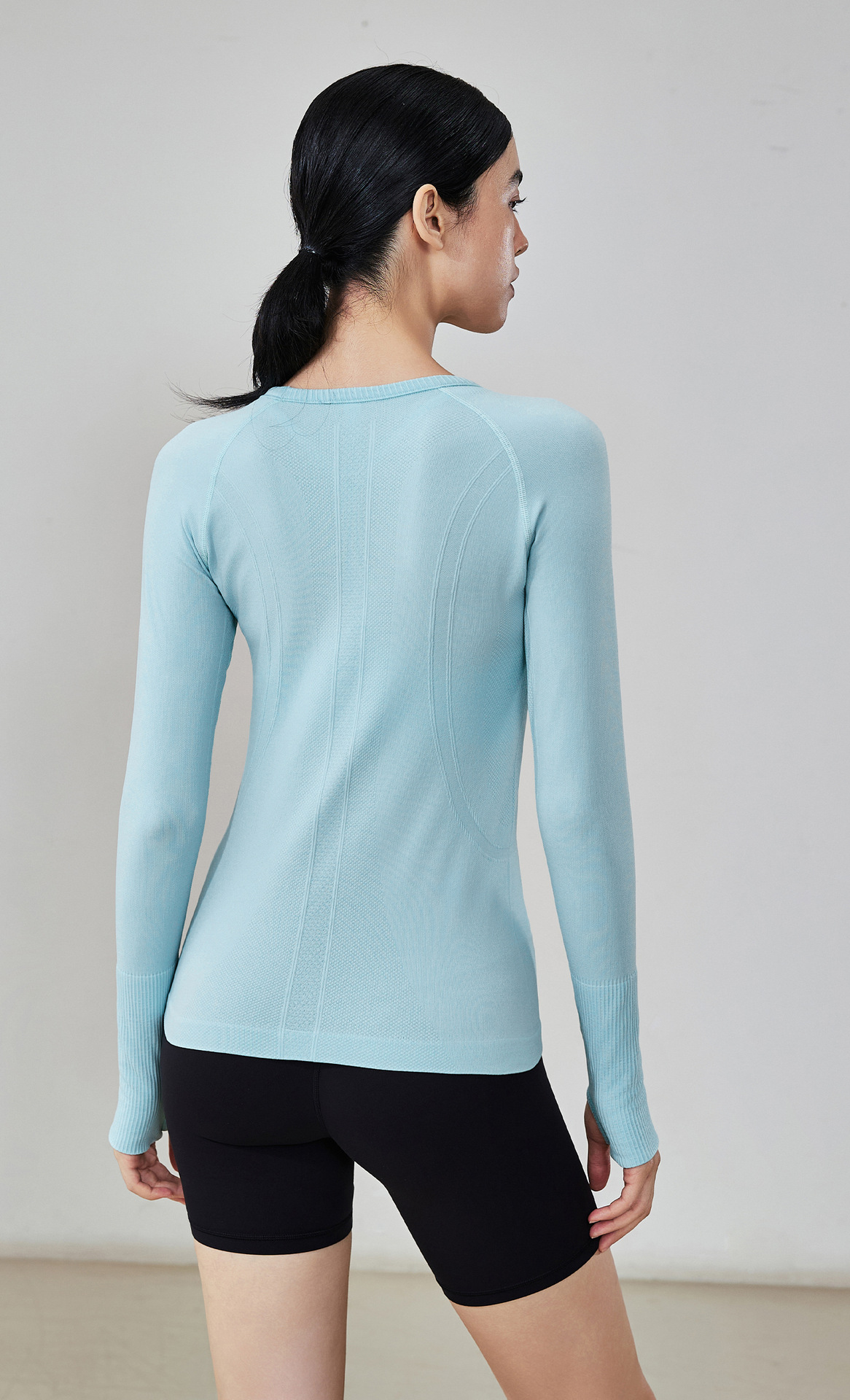 무봉제 요가복 상의 스포츠웨어 라운드넥 슬림핏 흡습 발한 피트니스복 여성용 가을 긴팔 통기성 운동복